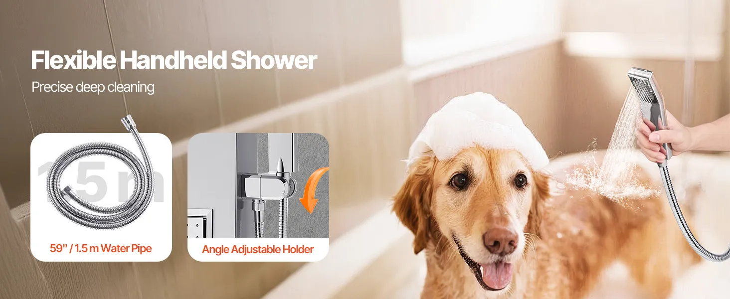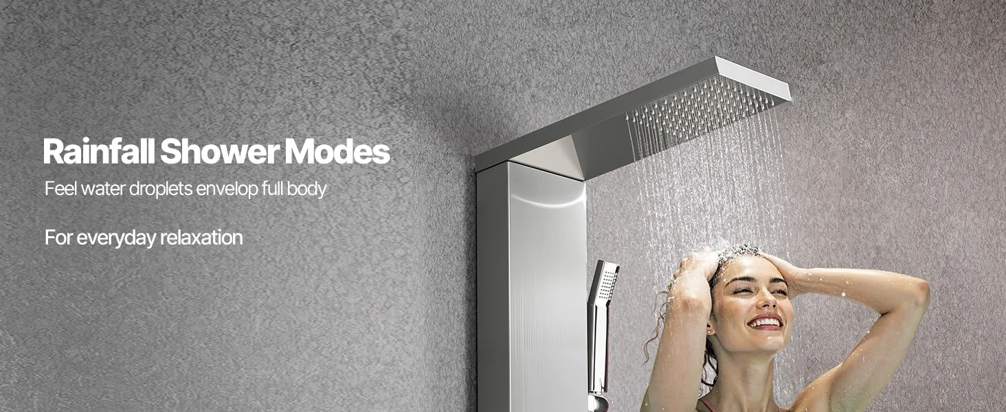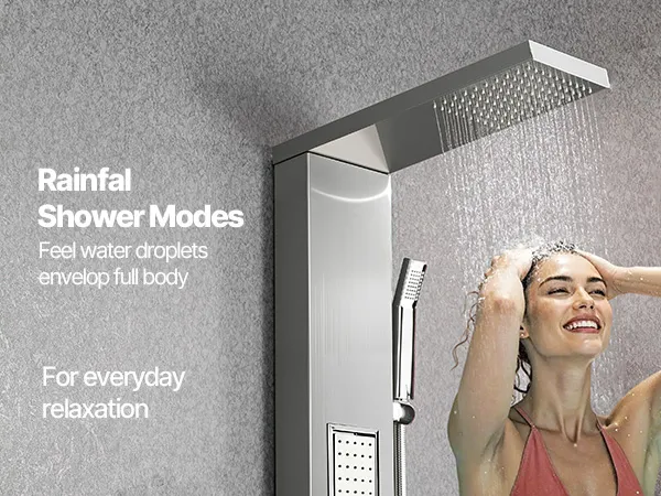 See, dušš paneel tower süsteem on multifunktsionaalne ja kohandatav, et see sobiks teie meeleolu ja vajadustele. Laienenud disain tagab suurema loodusliku vee voolu katvuse kui duši all.