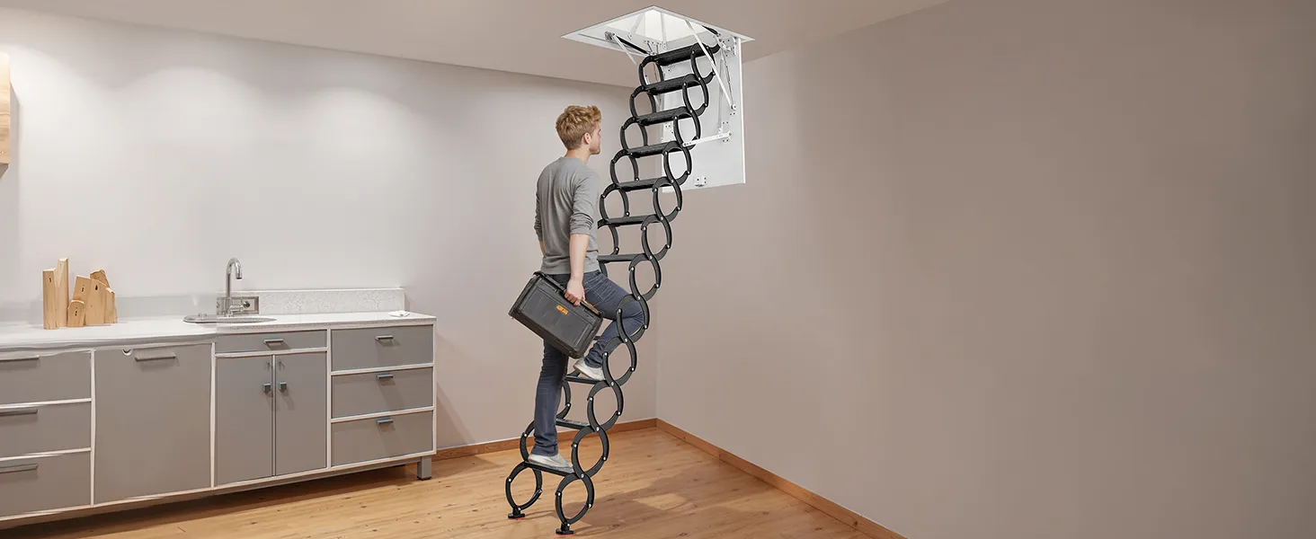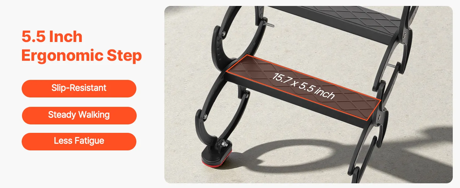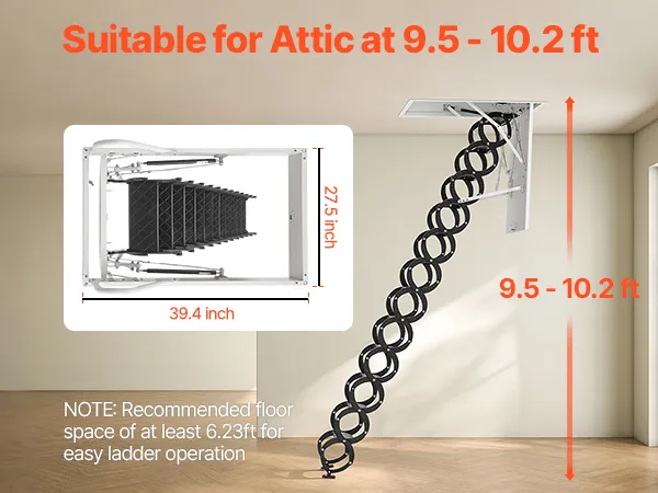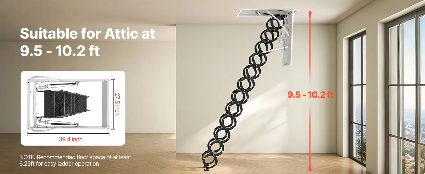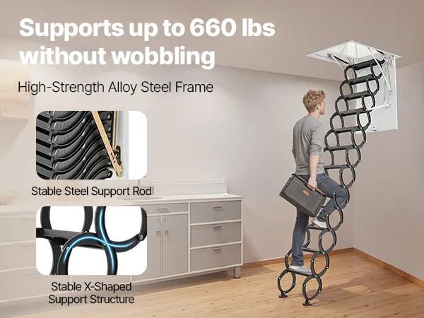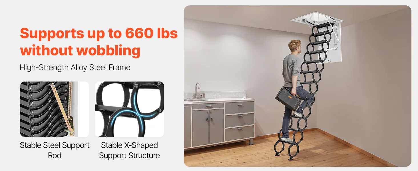 • Ruumisäästlik Disain: Koos volditud suurus 38.6 x 27.2 x 17.3 ja maandumise pikkus 55.1–57.1, see sobib kompaktne valdkondades. Eemaldatav sammud võimaldavad paindlikku paigaldus pööningutele, rõdude, katuste, või lofts