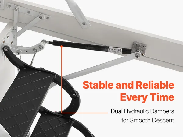 • Hüdrauliline Tugi Ohutuks Kasutamiseks: Täiendatud dual hüdrauliline vardad võimaldab redeli madalama aeglaselt ja ühtlaselt, mis aitab vältida ootamatult langeb. Säästab vaeva kasutamise ajal, ideaalne eakatele või need, kellel on piiratud tugevus