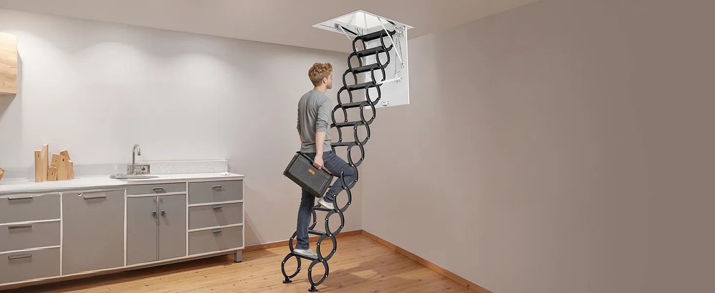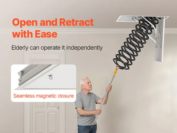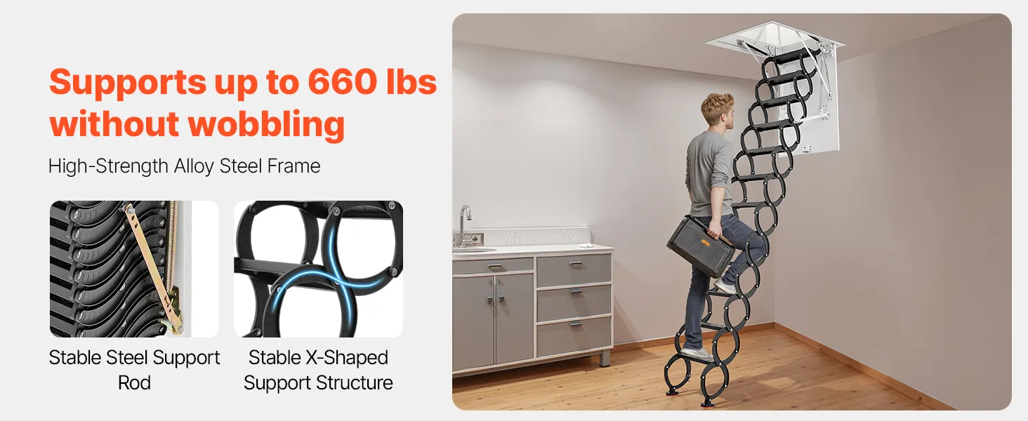 VEVOR Attic Ladder, 660LBS/299.4KG Capacity, Fits 10.5 to 11 ft Ceiling Height and 39.4 x 27.5 inch Opening Size, Alloy Steel Pull-Down Retractable Ceiling Stair with Pulling Rod for Attic Loft Roof