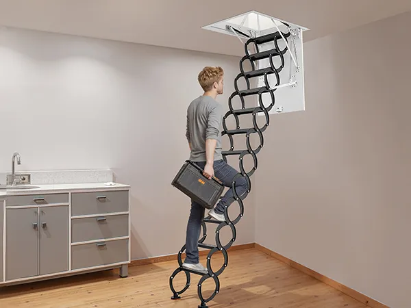 Pööningul redeli sobib 10.5-11 jalga laed ≥5.12 paksusega ja 2 seina vahe. Sulam, teras X-raam, hinged, ja toetada vardad hoidke 660 lbs 5,5" samme, libisemisvastased jalad, dual hüdrauliline vardad, mida on hõlbus kasutada. Sisaldab tõmba varras, ring -, magnet-uks. Voldid 38.6x27.2x17.3 on lihtne ladustada.
