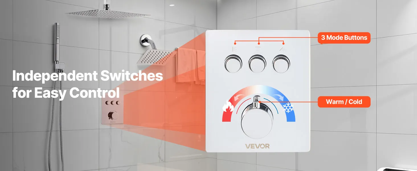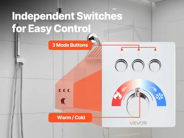 • 3-Function Shower System: Our shower faucet set includes a 2-setting handheld, side, and overhead shower. Three independent buttons and a control knob let you switch water flows and adjust temperature. The concealed pipe design creates a modern style