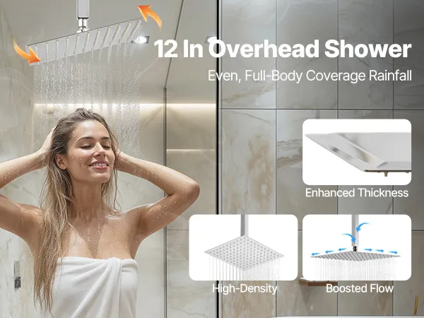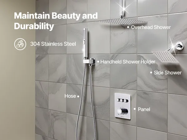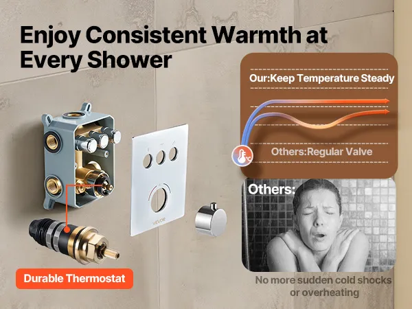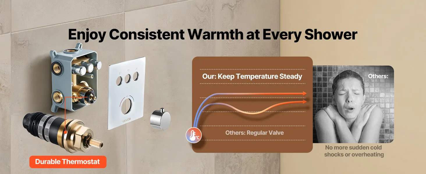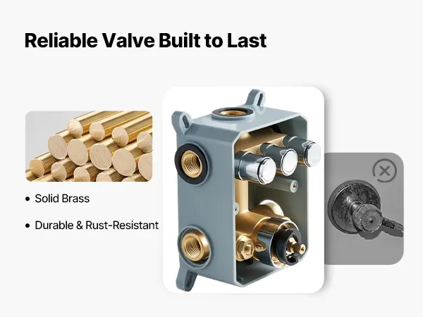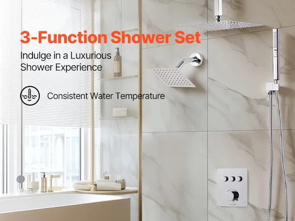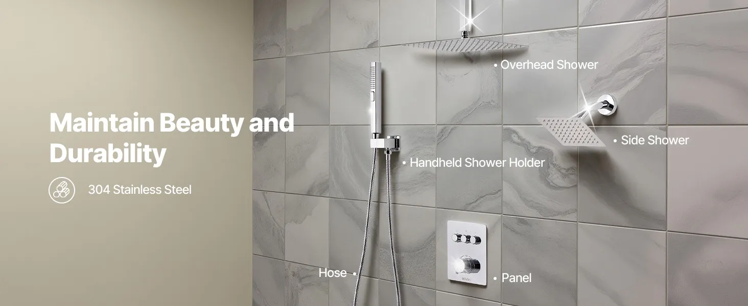 • Scald-Proof Thermostat: This rain shower system features a high-precision thermostatic valve. It maintains a consistent and safe water temperature throughout your shower