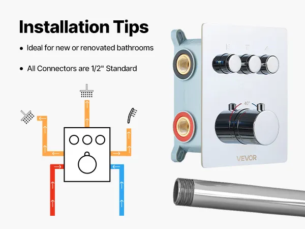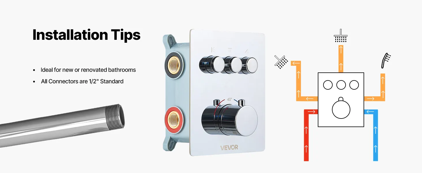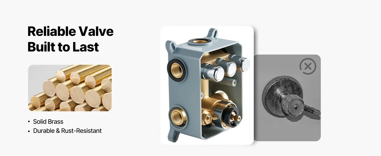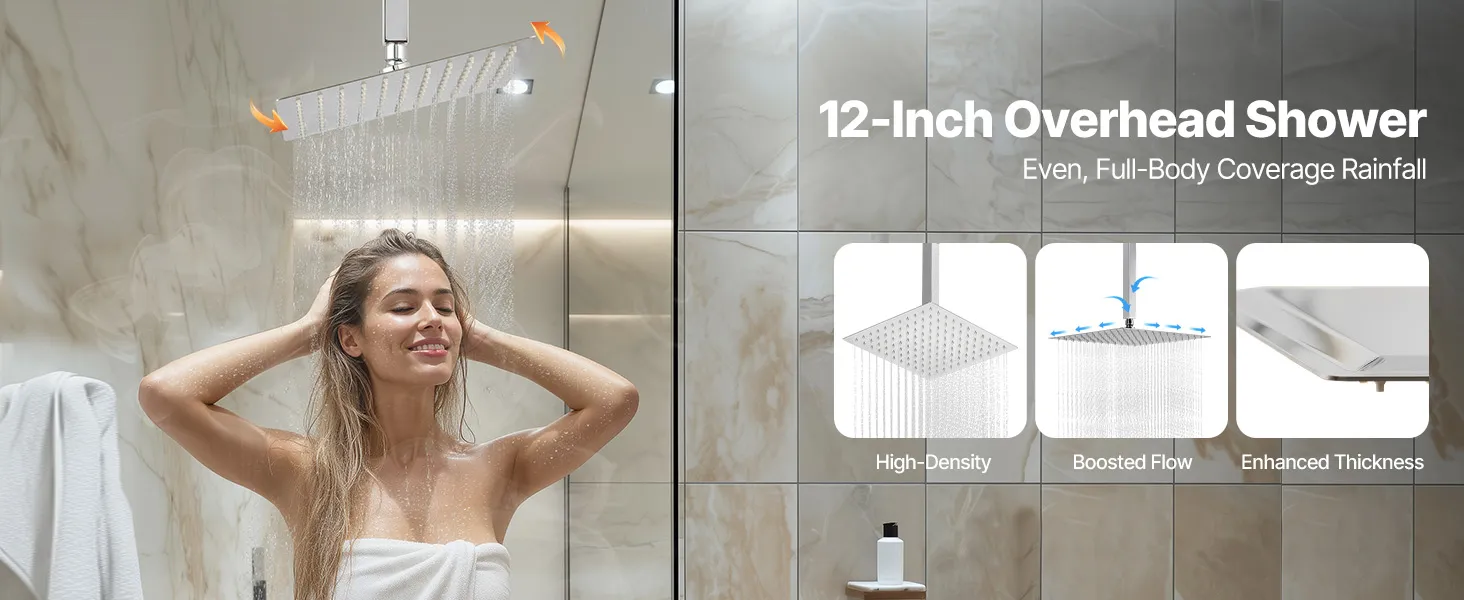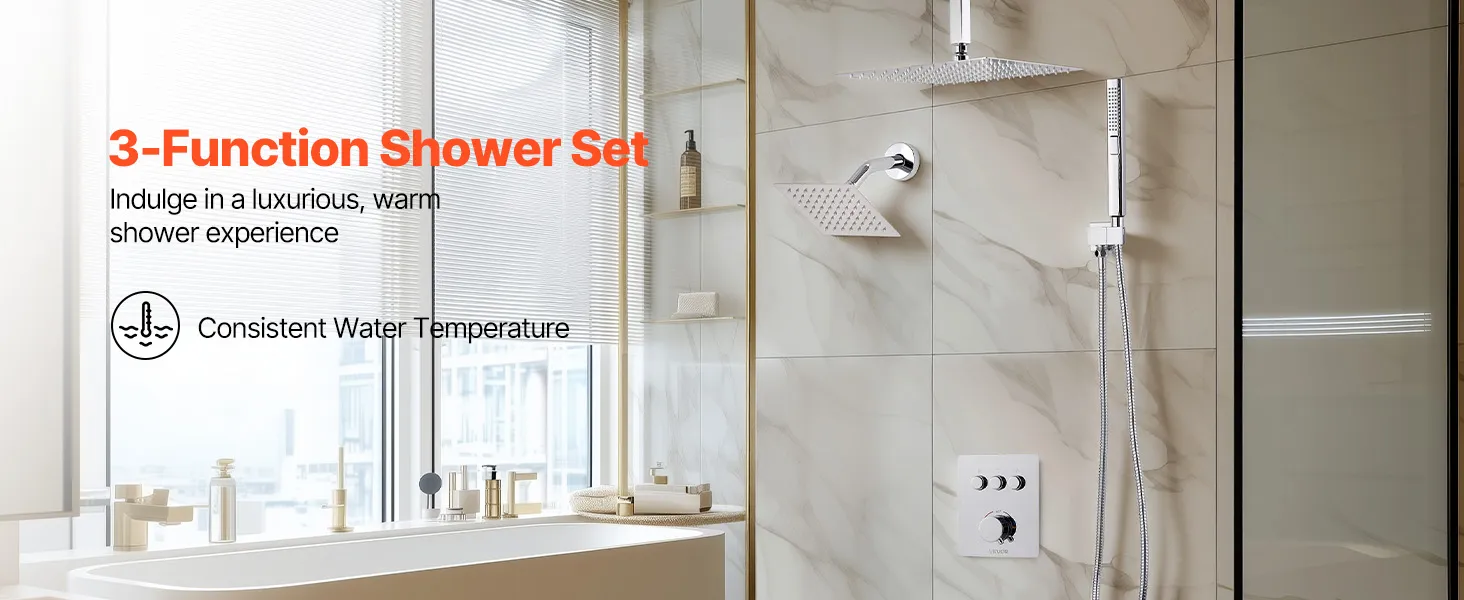 • Scald-Proof Thermostat: This rain shower system features a high-precision thermostatic valve. It maintains a consistent and safe water temperature throughout your shower