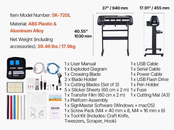 • System Compatibility: This vinyl cutting machine supports Windows 7–11 and macOS. Choose from USB, U-disk, or serial port connections. It comes with a licensed SignMaster activation code, no CD driver required, making setup fast