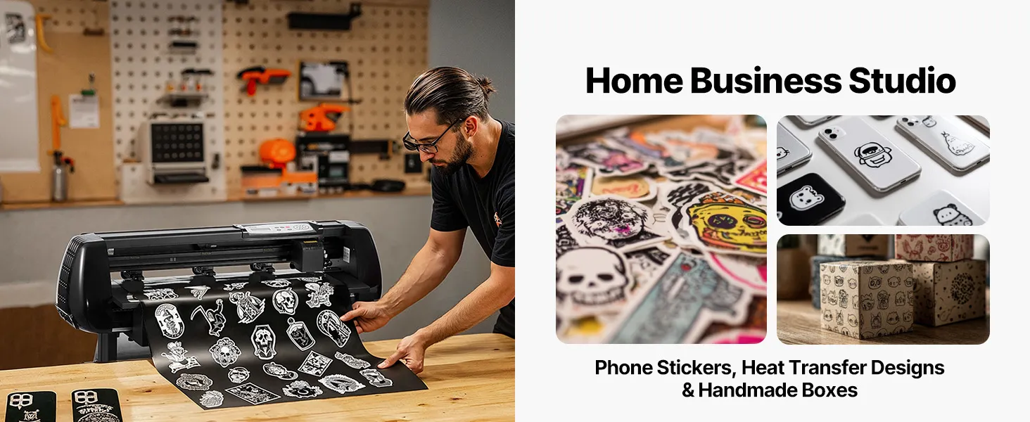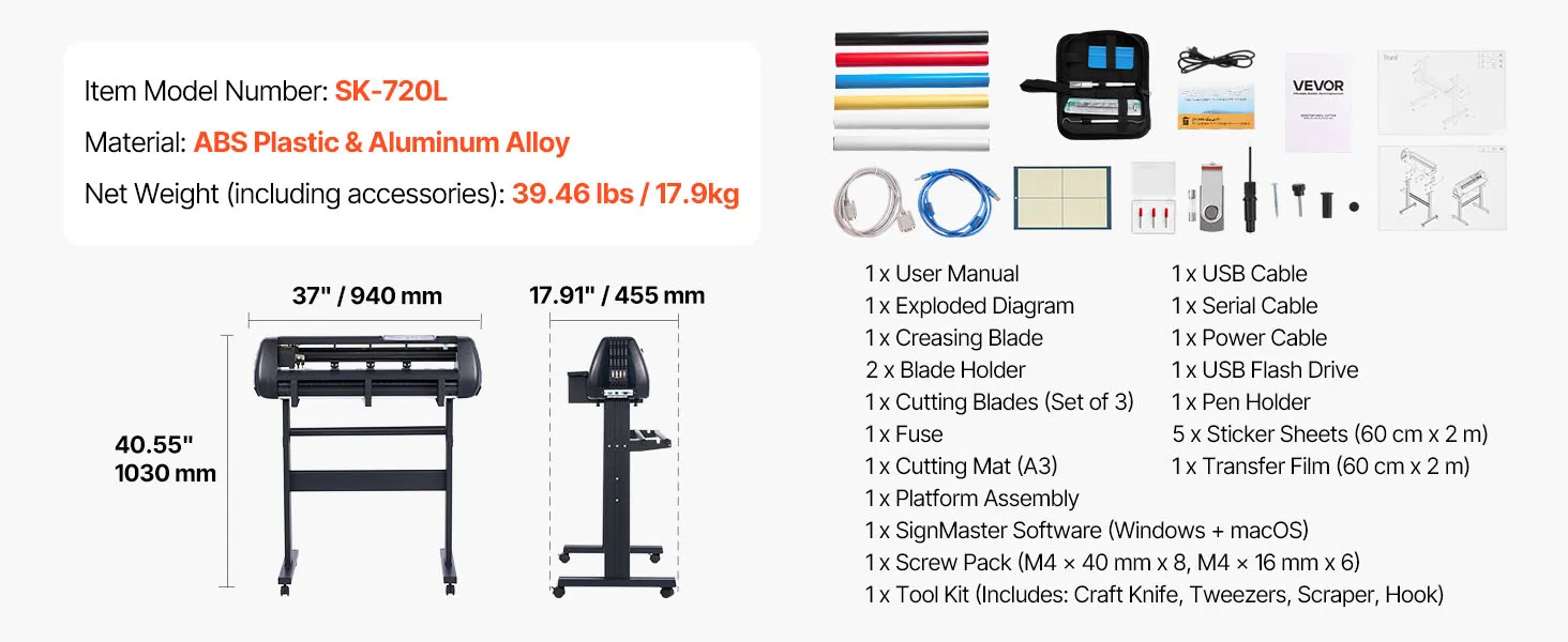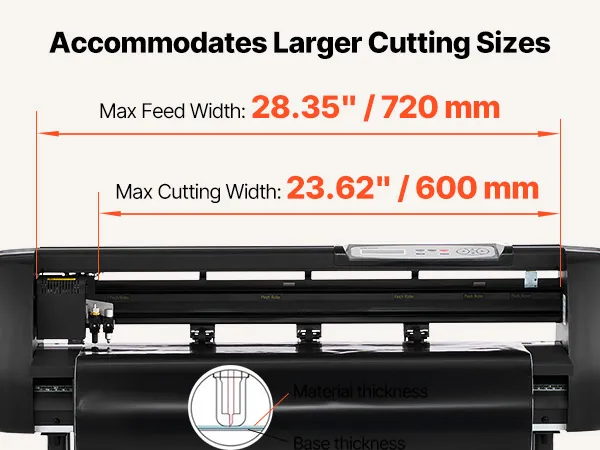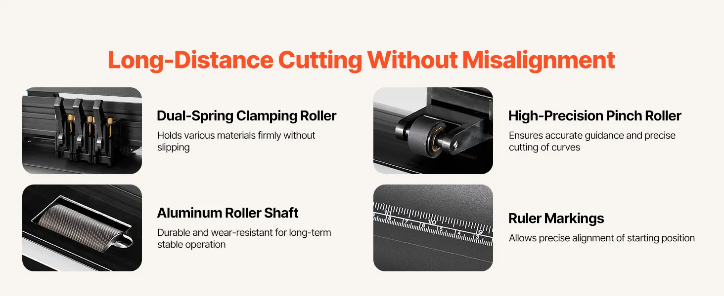 • Material Versatility: This vinyl plotter works with sheets and rolls up to 1 mm thick, with 20–500 gf adjustable force. It easily handles vinyl, HTV, adhesive vinyl, magnetic sheets, sticker paper, car decals, and more for DIY or commercial projects