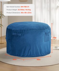 VEVOR Adult Bean Bag Chair – Blue, Round Shape, Dutch Velvet, High-Density Foam, Washable Cover, Handle & Pocket