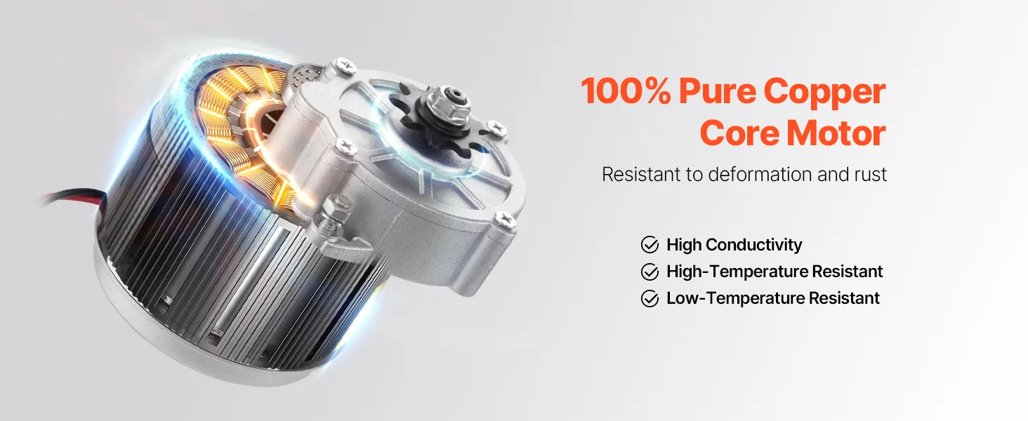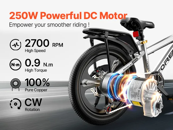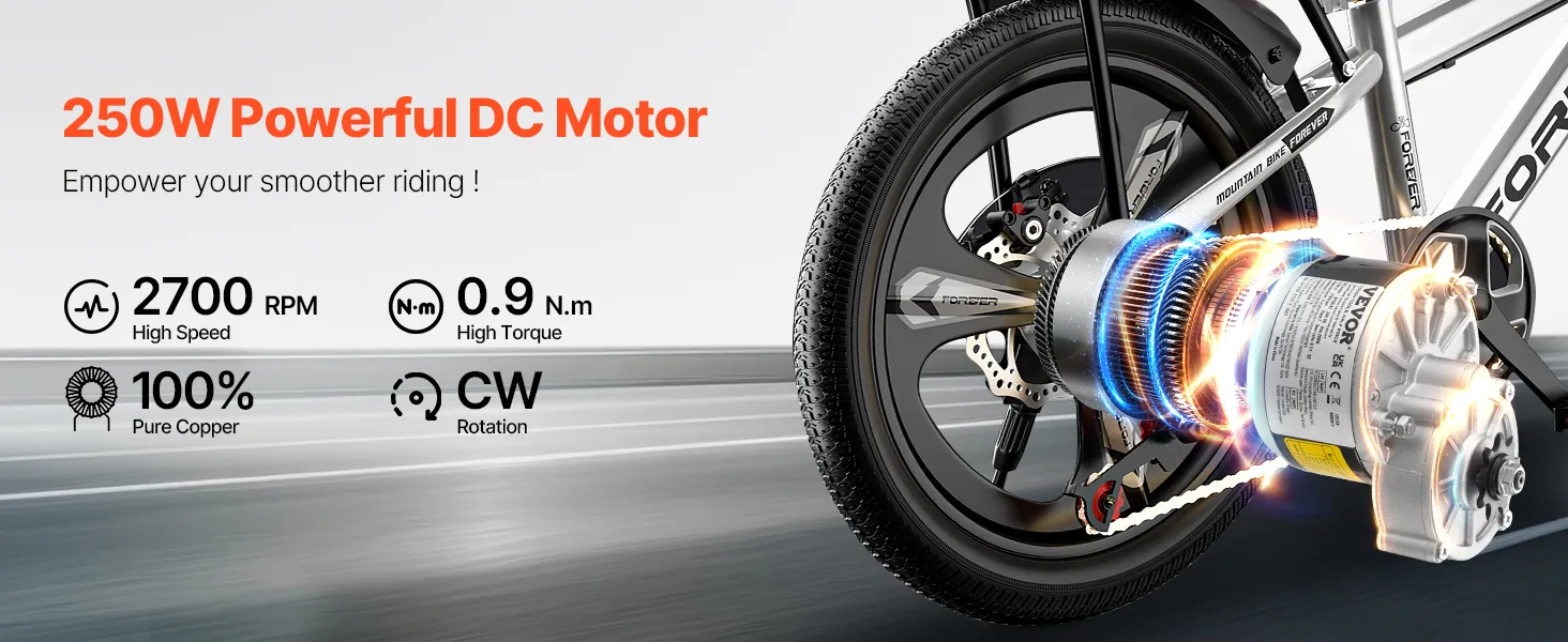 Upgrade your ride with confidence and experience enhanced power, reliability, and enjoyment with the 250W 24V powerful brushed DC motor, upgraded controller, 0.9N.m rated torque, and CW direction control. Effortlessly conquer uphill climbs and navigate challenging terrains with ease.