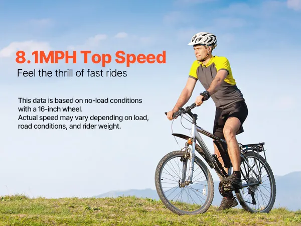 Patirtis ultimate suvirpinti su 8.1 MPH be apkrovos greitis! Pajusti džiaugsmą greitai važiuoja, kad padaryti kiekvieną kelionę nepamirštamą. (Tai maksimalus greitis yra pagrįstas be apkrovos sąlygomis, su 16 colių ratų — tikrasis greitis gali skirtis, priklausomai nuo apkrovos, kelio sąlygų, ir raitelio svorio)