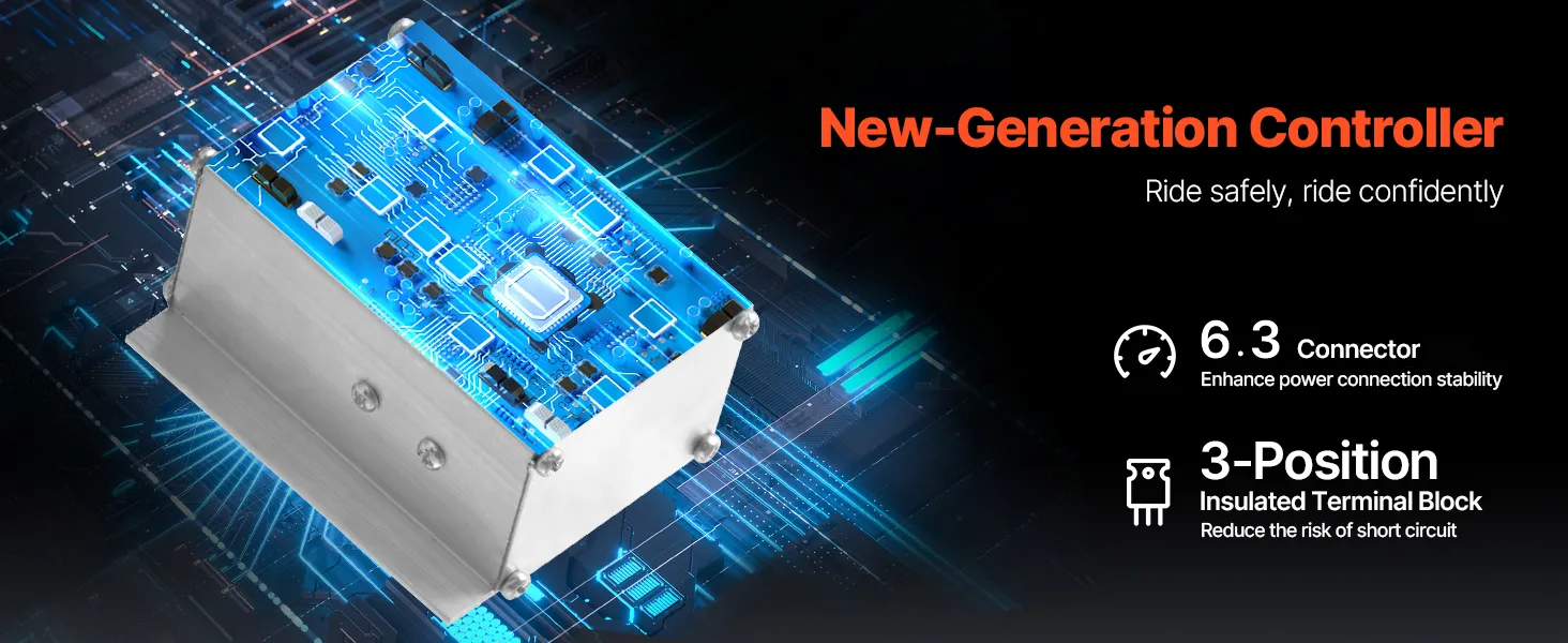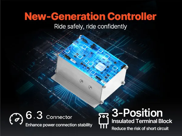 Upgrade to our new-generation controller and ride safely. Featuring a 6.3 connector, it enhances power connection stability for reliable performance. The 3-position insulated terminal block reduces the risk of short circuits, adding an extra layer of safety to your journey.