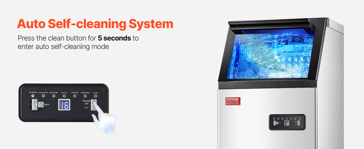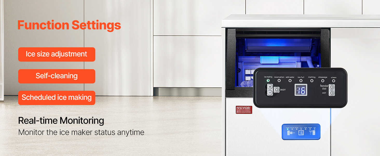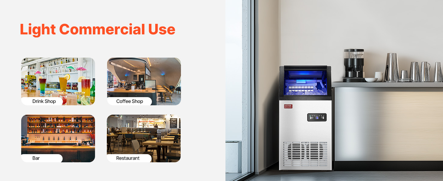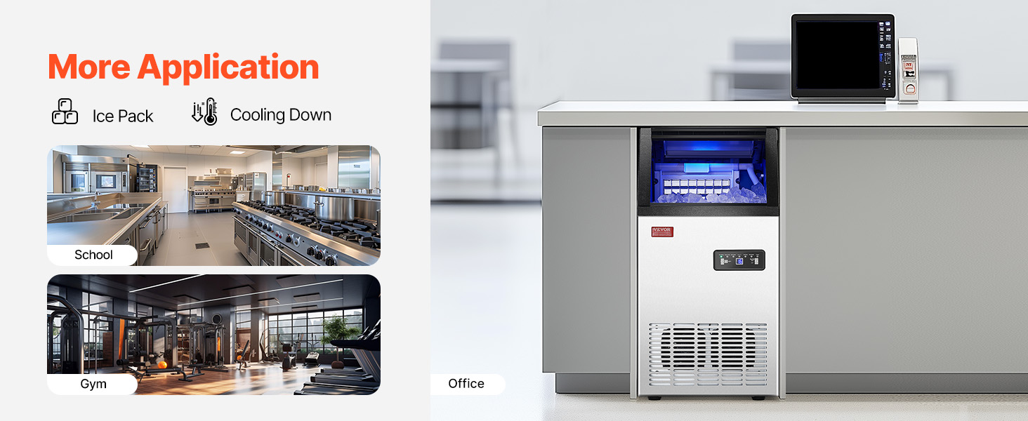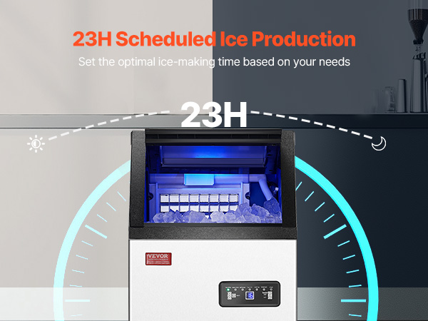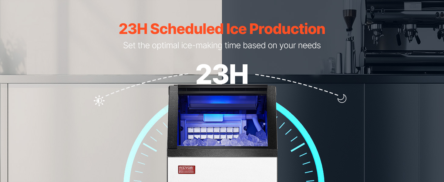 Mūsų prekybos ice maker " gamina 100 svarų ledo kubeliai per dieną, ir 8 valandų trukmės izoliacijos funkcija leidžia jums turėti ledo kubeliai, jei norite.