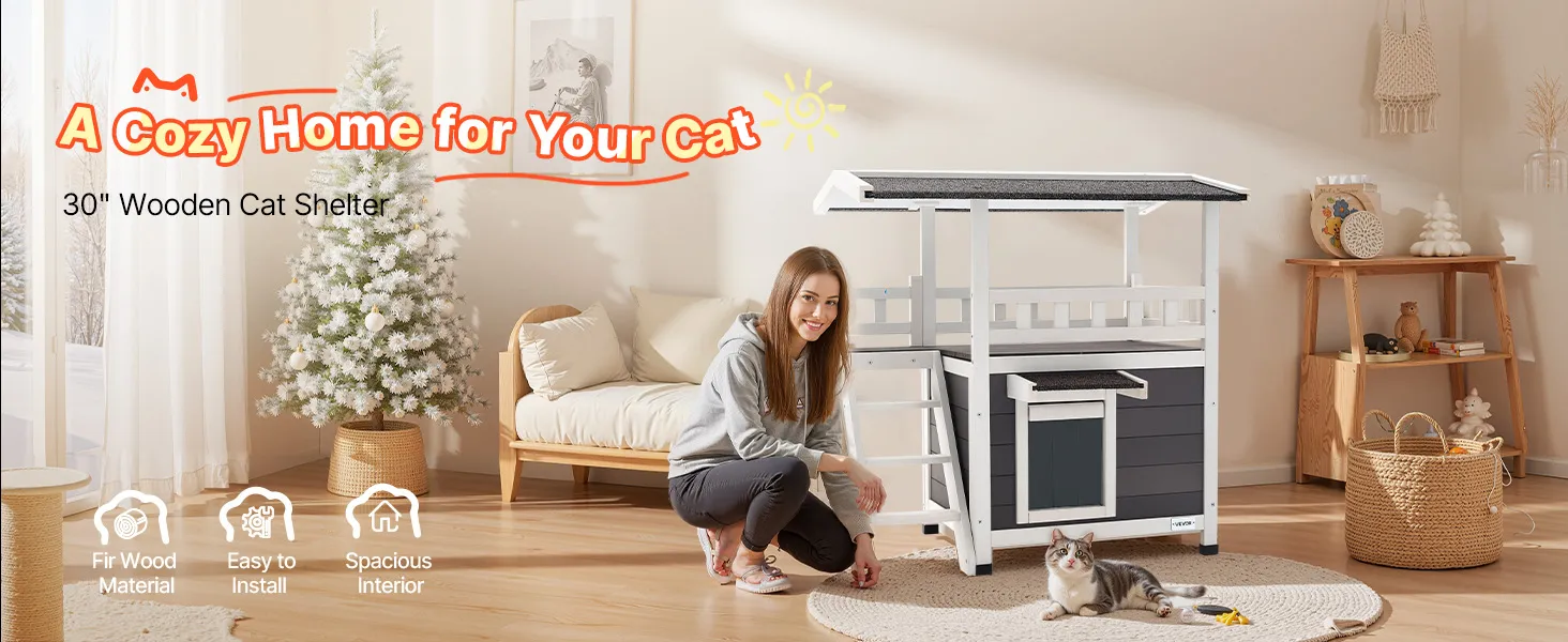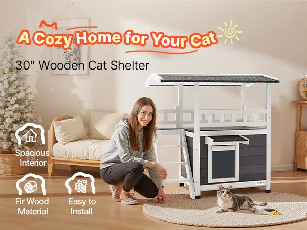 Crafted from premium fir wood, the wooden cat house is durable and sustainable. It provides a warm, secure shelter with spacious interior for resting.