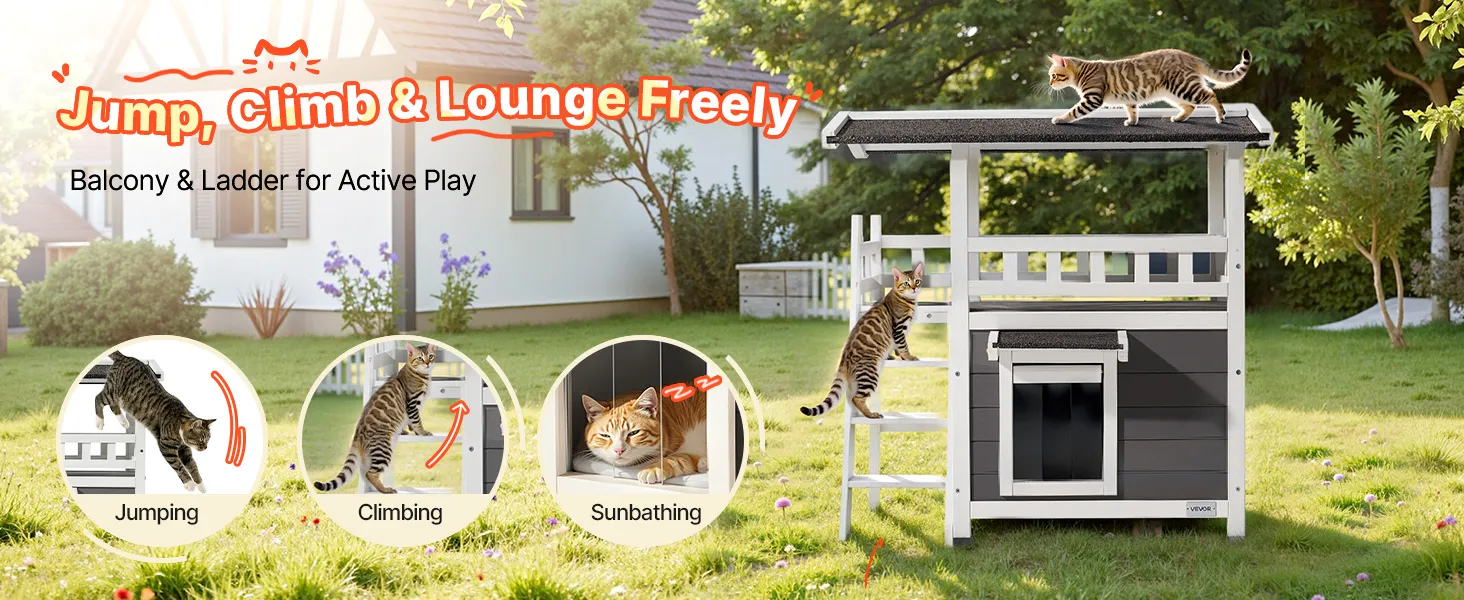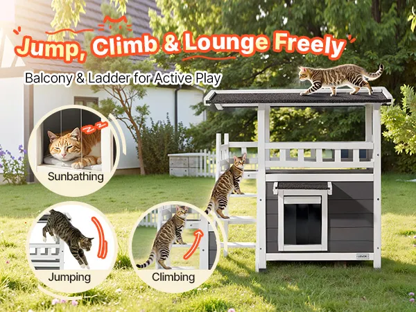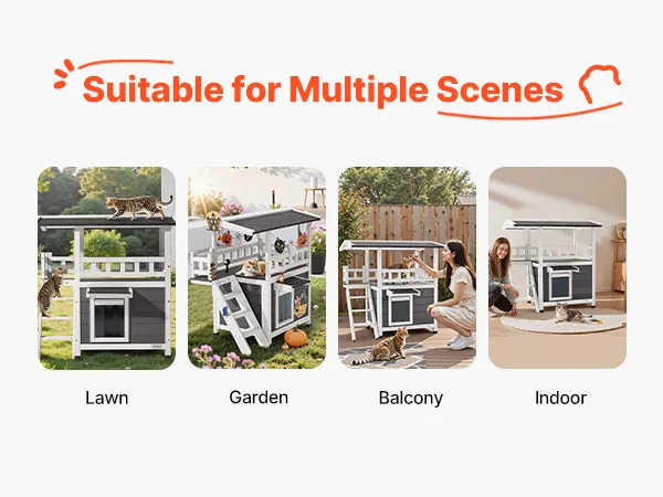 This elevated cat house features dedicated feeding, resting, and play areas. Each area offers private space for cat, make it ideal for multi-cat households to reduce stress and provide private space.