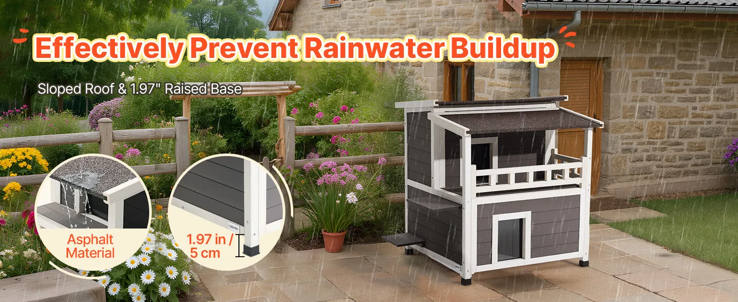 VEVOR Insulated Cat House, 2-Story Wooden Cat Shelter, Foam Insulation, Feral Kitty Shelter with Balcony, Waterproof Cats Condos for Indoor & Outdoor 1-3 Cats in Winter 84 × 75 × 82 cm