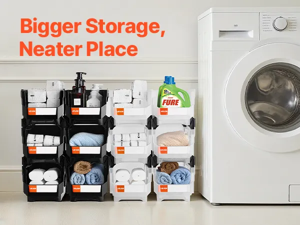 • Stack It Up, Space-saving: Our plastic stackable bins (14.8 x 8.5 x 7.1 in) are compact yet versatile. Excellent for cabinets, desks, or storage rooms, they help you declutter and match freely based on your needs