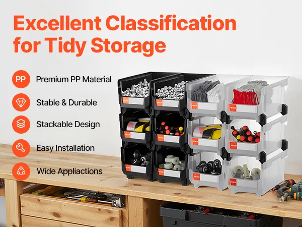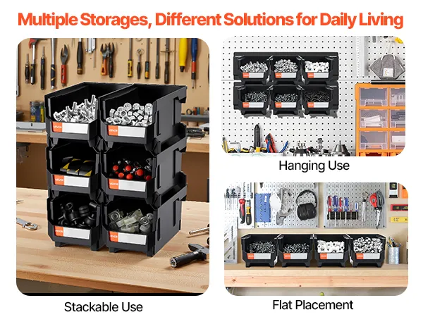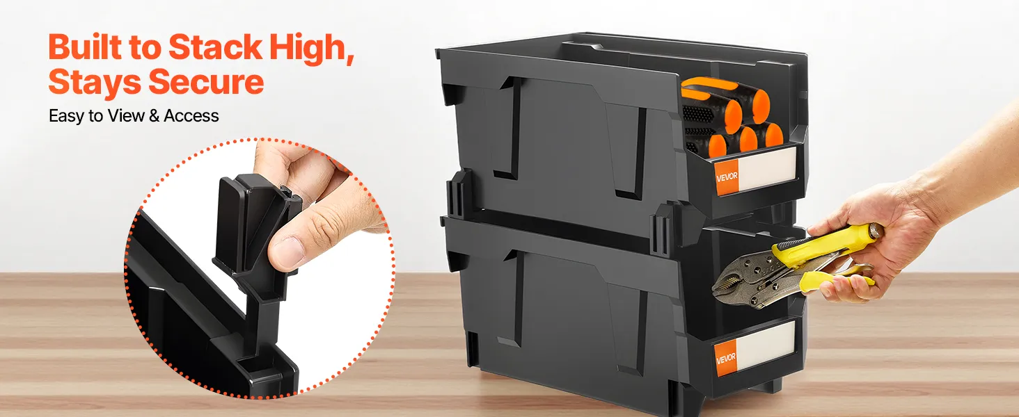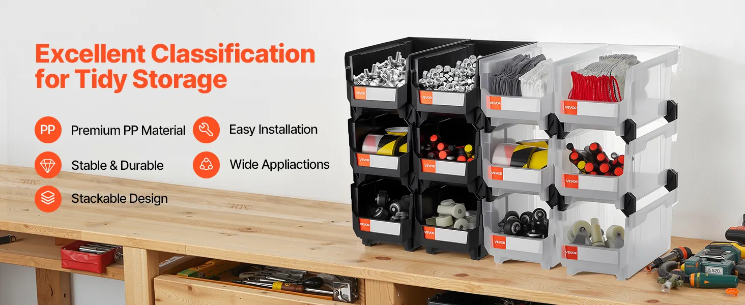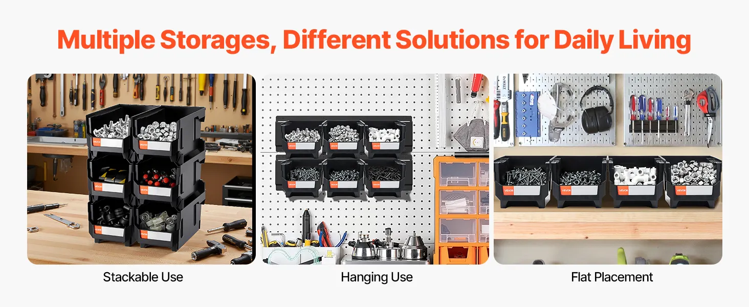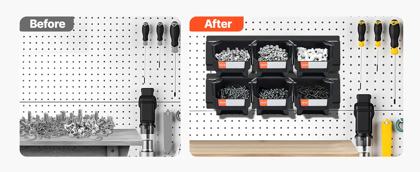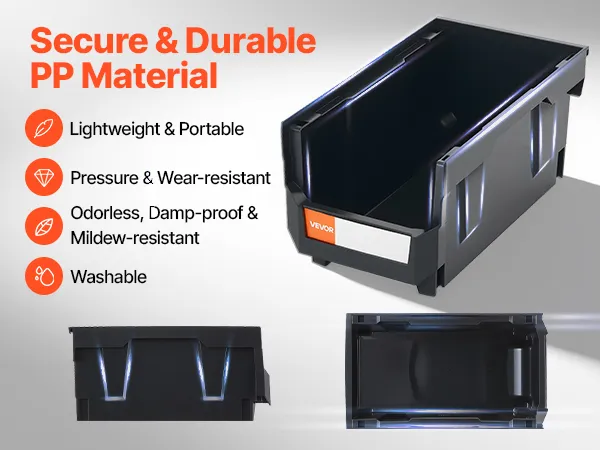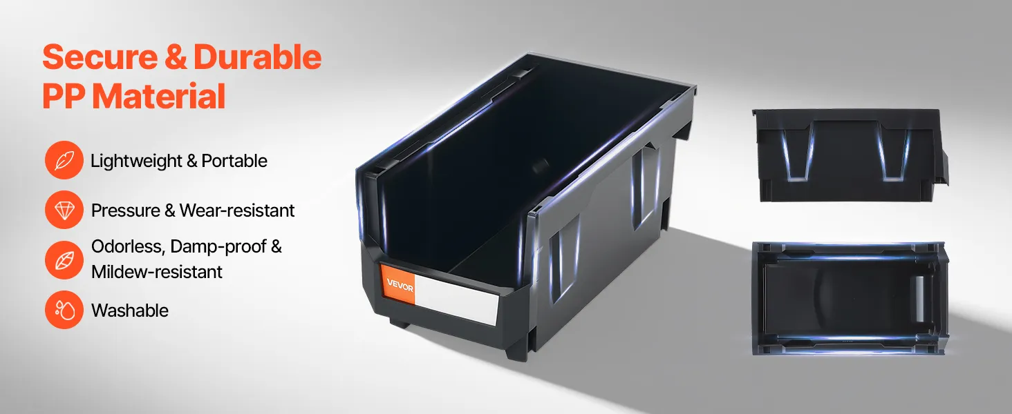 • Durable & Practical: Crafted from sturdy, easy-to-clean PP plastic with reinforced pillar-style supports, these garage organizer bins can be stacked, hung, or placed flat. No wobbling, no breaking, fully reusable