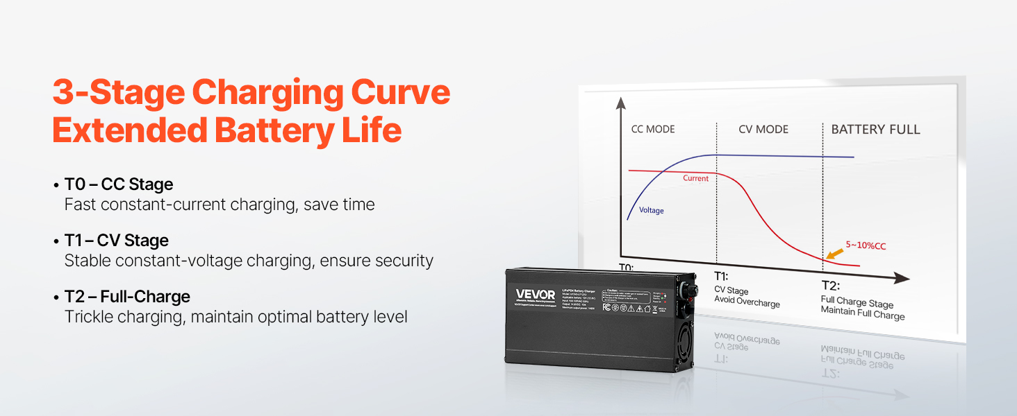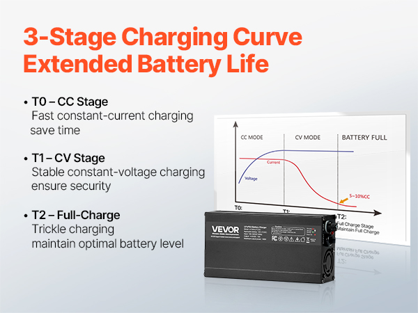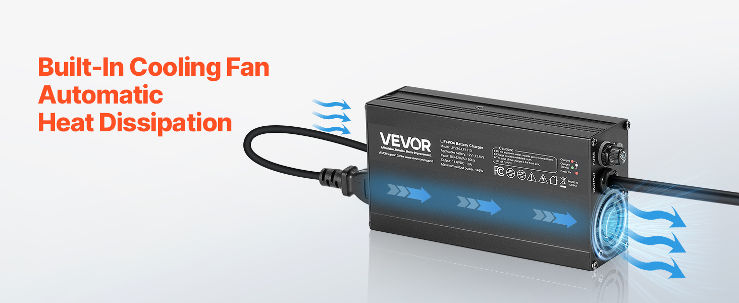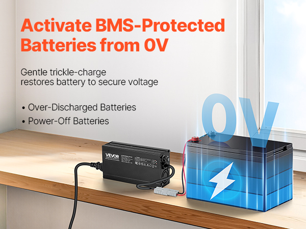 Ideal for RV campers, boaters, and solar energy users. Our charger delivers 14.6V DC output voltage and 10A charging current, fully charging a 50Ah battery in just 5 hours. With a three-stage intelligent charging curve and 0V activation function, it easily wakes up deeply discharged batteries.