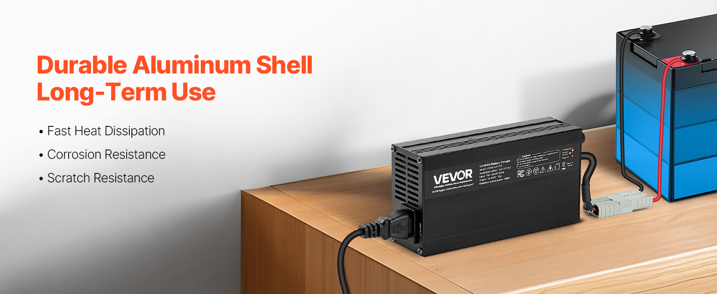 VEVOR 12V 10A Lithium Battery Charger, 14.6V, AC-DC LiFePO4 Smart Charger, with Anderson Connector, LED Indicator, 0V Activation, for Lithium LiFePO4 Deep Cycle Rechargeable Batteries of Boat, RV