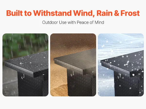 Mūsų 71-colių sunkiųjų priemonių rinkinys yra pastatytas iš storo aliuminio, remti 110 svarų. Savo deimantų plokštės paviršiaus priduria, ilgaamžiškumas, o oras atspari konstrukcija atlaiko saulės, lietaus, dulkių ir šalčio. Nerūdijančio plieno spyna ir 100N hidrauliniai statramsčiai užtikrinti saugaus sandėliavimo ir sklandžiai 70-90° dangčio atidarymas.