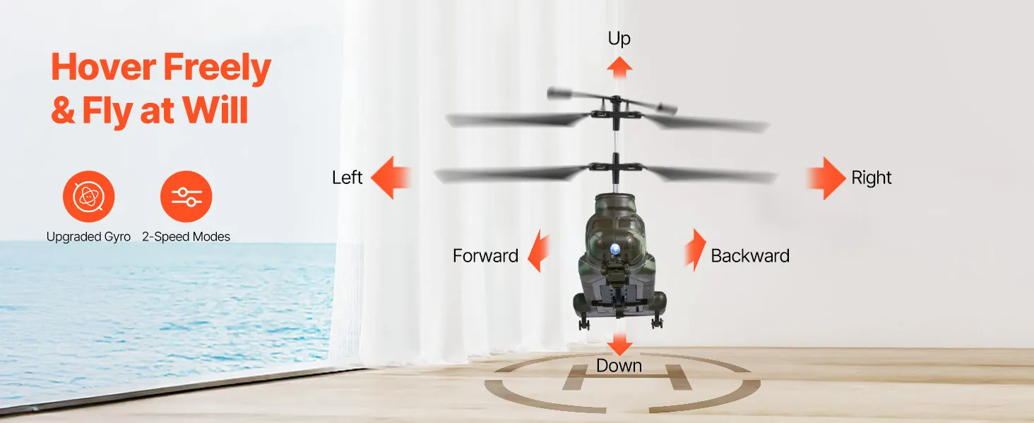 • Full Control: Equipped with an advanced flight control system and upgraded gyroscope, the mini helicopter toy provides stable hovering, ideal for indoor or outdoor use in calm conditions. It ensures smooth flight with minimal risk of losing control.