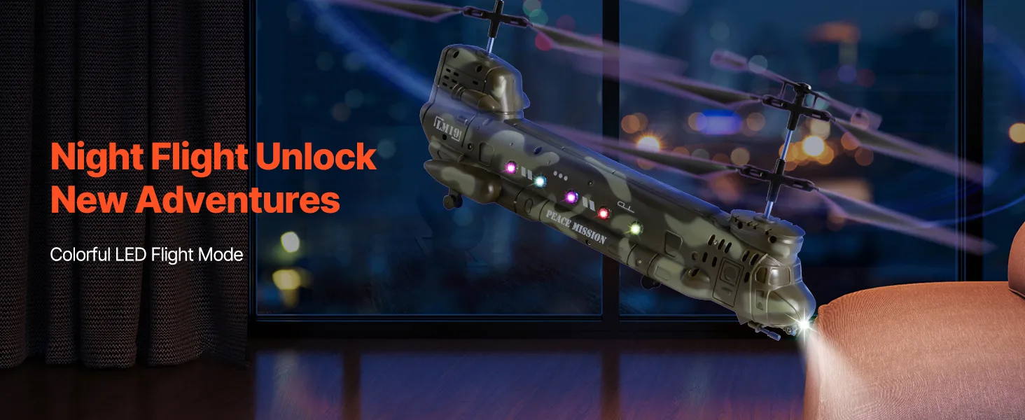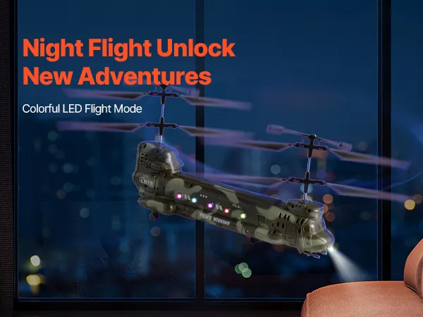 • Fun Night Flight: With multiple LED light effects, the remote control helicopter looks stunning during night flights and provides security warnings when the battery is low. Fun for both indoor and outdoor play.
