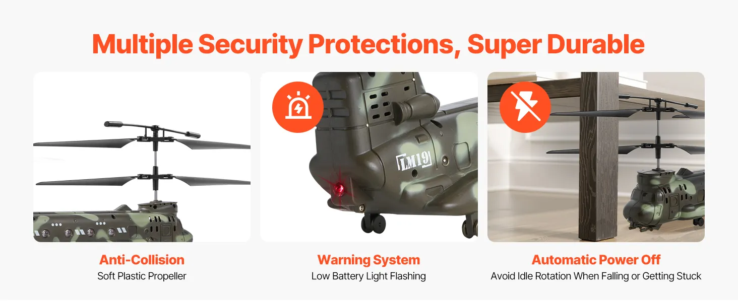 • Secure and Durable: Built with a sturdy ABS body and flexible ABS/aluminum propellers, this flying helicopter toy is shock-resistant and designed to protect internal components during crashes, extending its lifespan and providing peace of mind for parents.