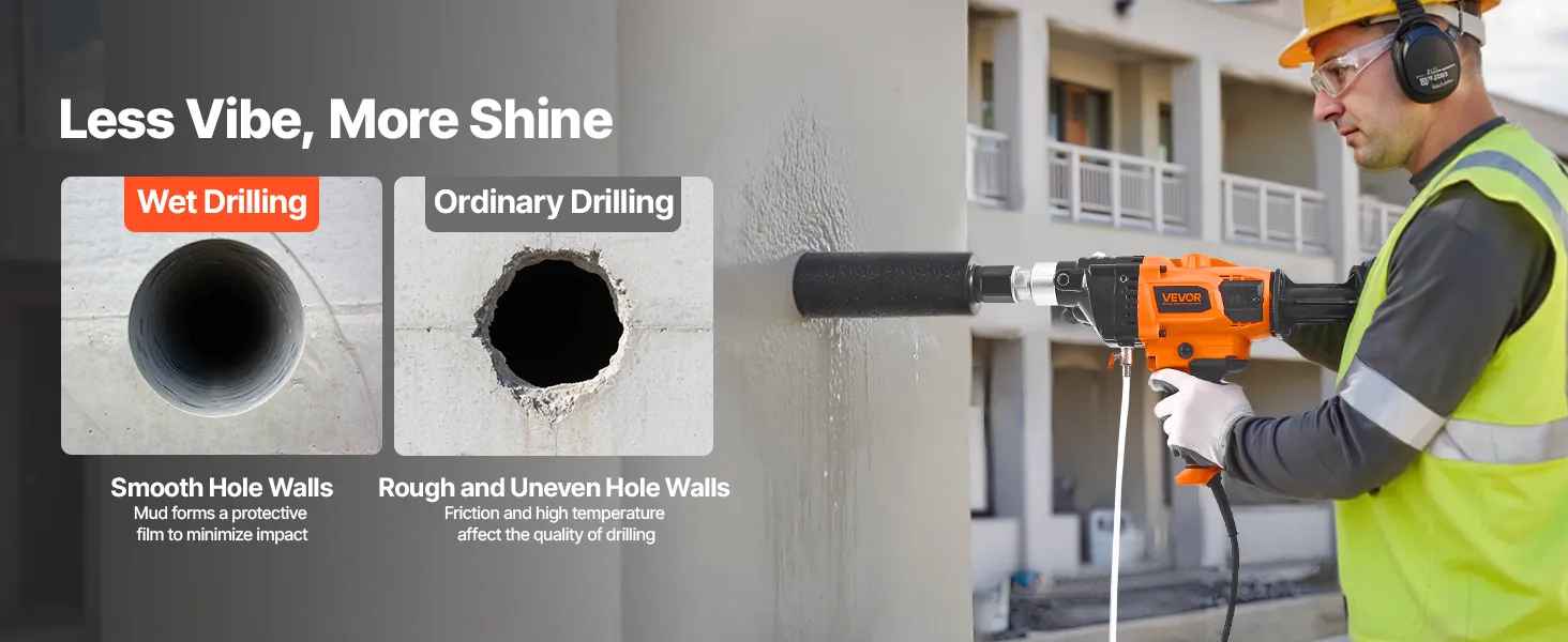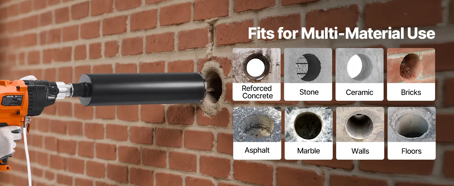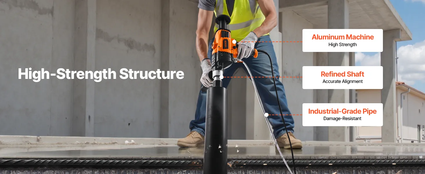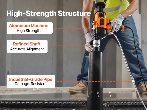 This core drill packs a 2000W motor with 0-1800 RPM variable speed to handle both small and large holes with ease. With a drilling diameter of 0.8-6.3 in (20-160 mm), it's built to tackle demanding projects.