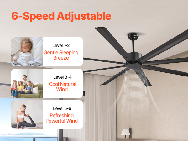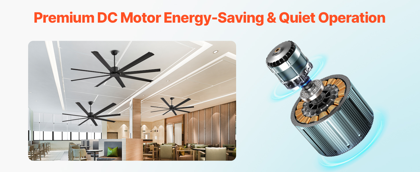 The selected steel-blade fan reduces heat and offers refreshing breeze by promoting air circulation. With a reversible DC motor and various speeds and timers, our ceiling fan operates noiselessly and delivers powerful airflow. 3-sized downrods meet installation needs of various ceiling heights.