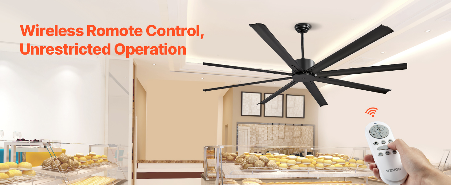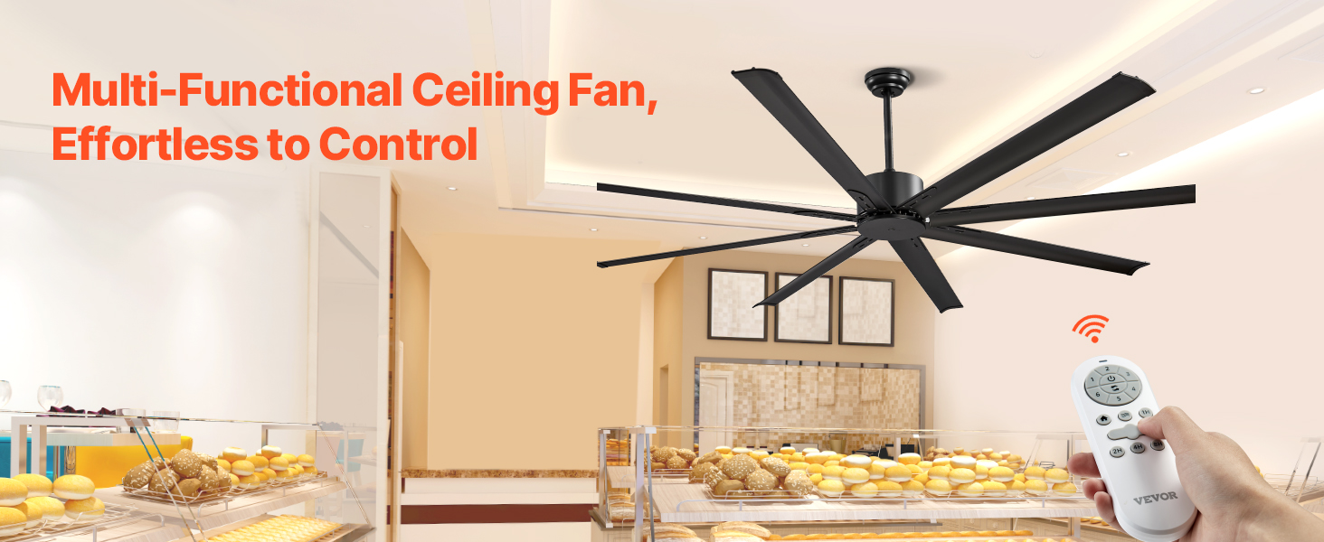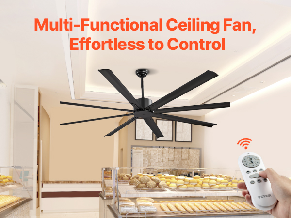 VEVOR 213 cm Ceiling Fan No Light, 6-Speed Remote Control, Aluminum 8-Blade, Reversible DC Motor, Modern Low Profile Flush Mount Exterior Fan for Bedroom, Living Room, Patio, Indoor/Outdoor, Black