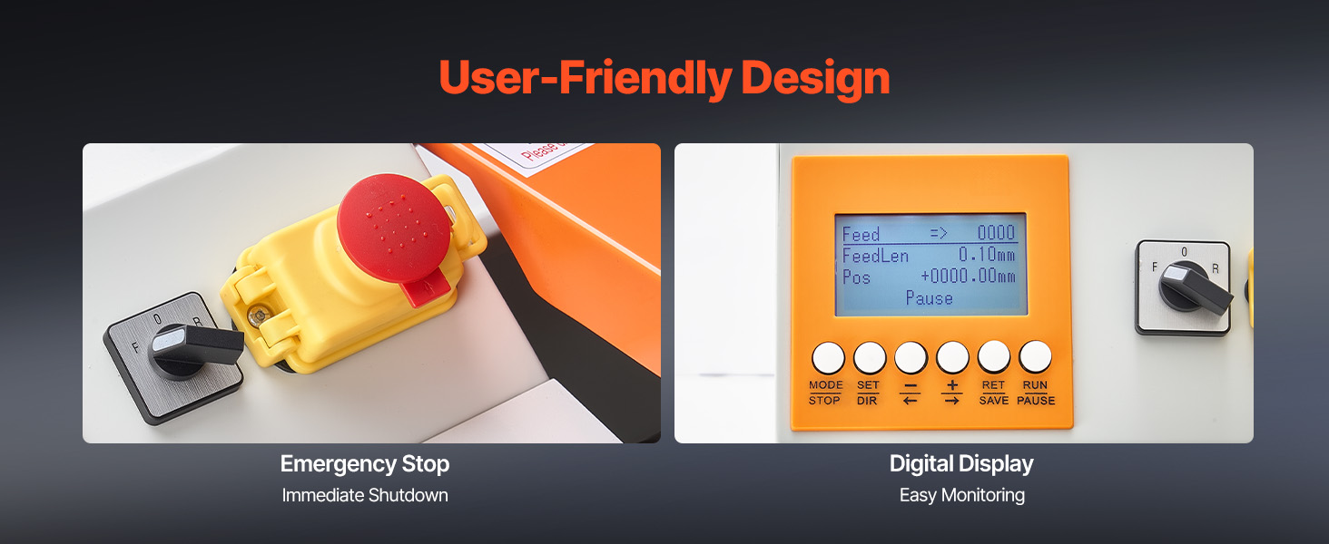 Avarinio stabdymo mygtukas leidžia greitai išjungti, o skaitmeninis ekranas leidžia lengvai sekti apdirbimo procesą realiu laiku, siūlanti saugią ir patogią vartotojo patirtį.