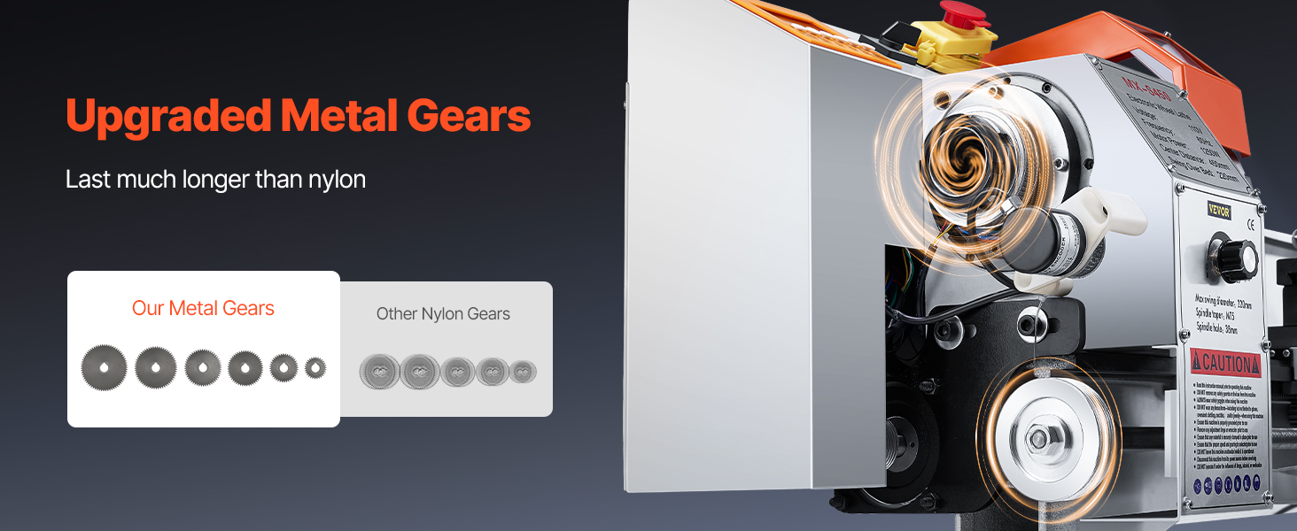 This power metal lathe has an electronic threading system, allowing easy switching between metric and imperial units. It supports fully automatic feeding and has a belt-free drive system. It is ideal for processing soft metals, acrylics, and plastics, as well as mold making, part repair, etc.
