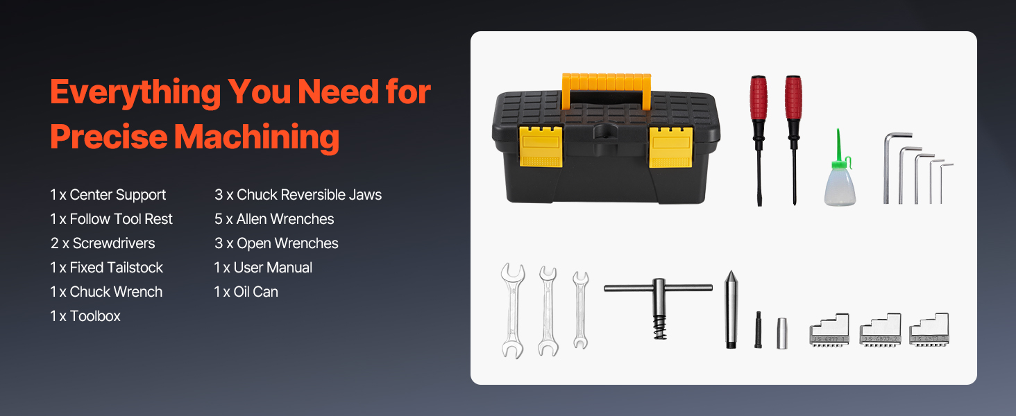 VEVOR Metal Lathe Machine, 220 x 450 mm(8.7 x 18 in), Precision Bench Power Metal Lathe, Automatic Feed, 0-2500 RPM Variable Speed, 1250W Brushless Motor, for Processing Precision Parts Soft Metals Wood Plastics