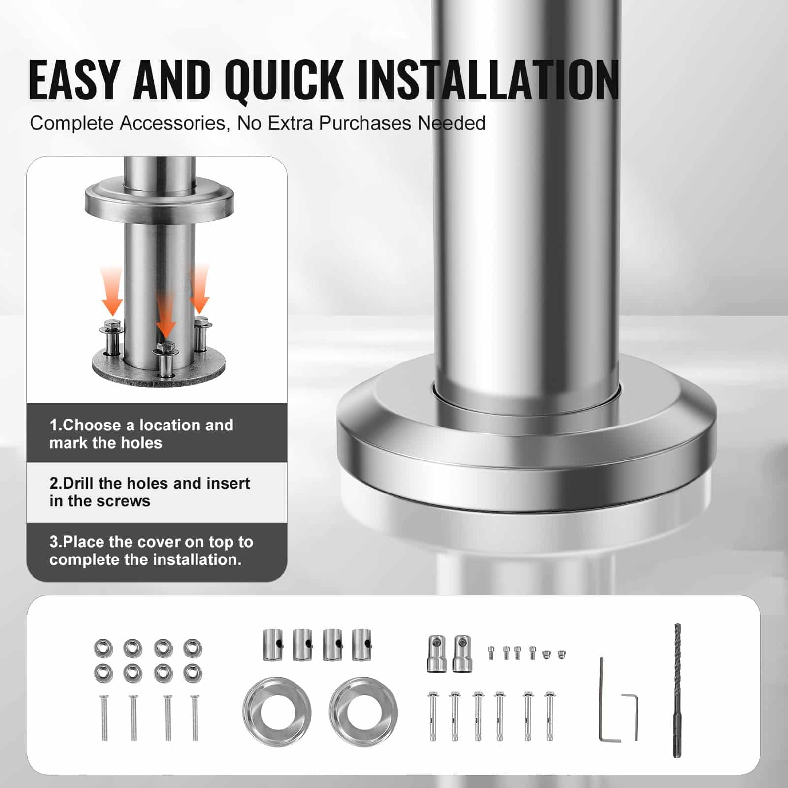 Mūsų turėklai gali būti montuojami ant betono, medžio grindys, plytelės, marmuro paviršių, leidžia jums pasirinkti, remiantis savo konkrečius poreikius.