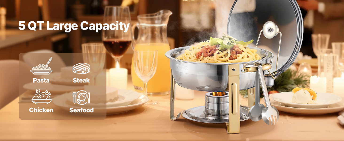 A1: This chafing dish is specifically designed to keep food warm. While it’s ideal for hot dishes, it can also be used for cold items as long as they are stored without heating. For best results, we recommend using it for hot food.