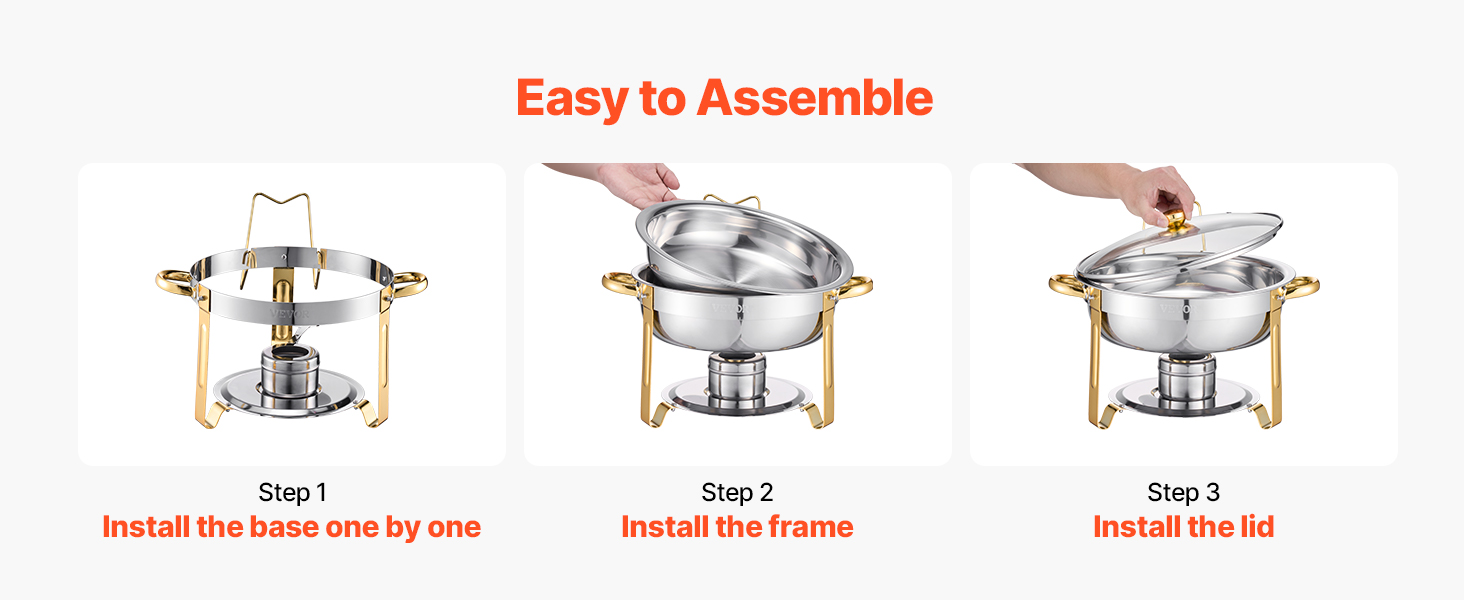 A2: Yes, the chafing dish is made from durable stainless steel, which makes cleaning a breeze. The food pan and water pan are both removable for easy washing, and the frame can be wiped clean after each use.