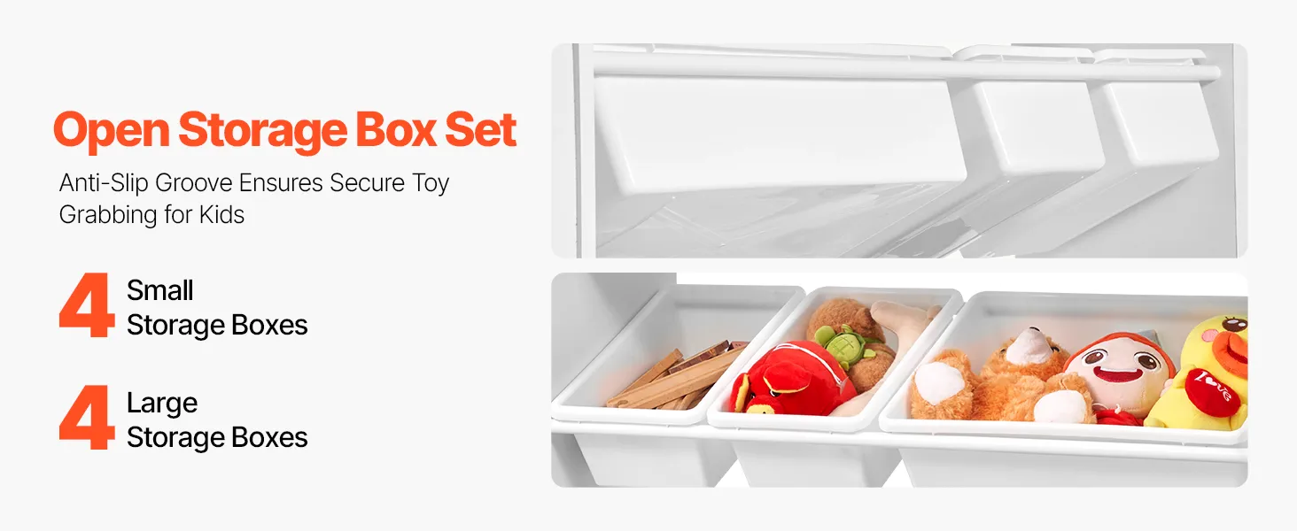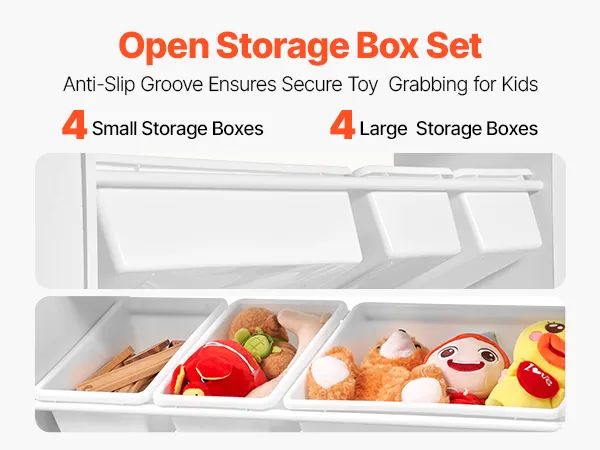 • Atviros Saugojimo Dėžės: 8 atidaryti dėžėse ant pasviręs, neslidus dainos, vaikai gali lengvai vietoje savo mėgstamų žaislų – nereikia kasti per uždaros dėžės. Dėžes buvimo vietą, ir ji taip pat moko, mažyliai, kaip rūšiuoti ir tvarkyti, padėti jiems išsiugdyti gerus įpročius