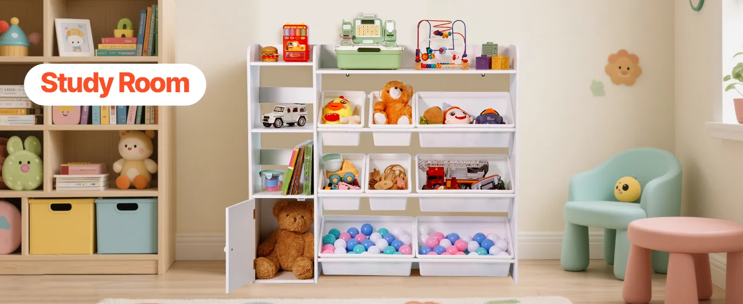• Daugiafunkcinis Saugojimas: Šis žaislas vaikams organizatorius jungia 2 atviros lentynos, 8 saugojimo dėžės, ir 1 kabinetas, suteikia jums daug galimybių žaislų, knygų, blokai, ir daugiau. Jis padeda išlaikyti dalykų, tvarkingas, nors ir erdvus dizainas leidžia įdomus vaikams, organizuoti savo stuff