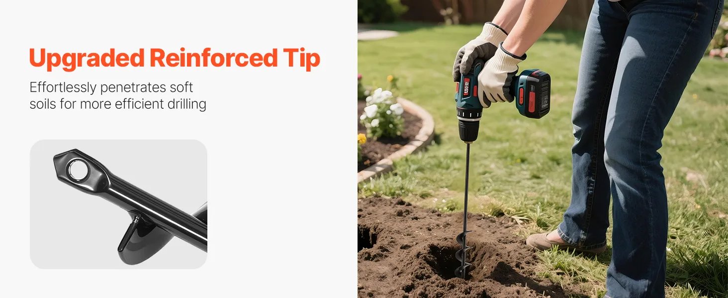 • Daugiafunkcinis Sodo Įrankis: Daugiau nei tik svogūnėlių, gėlių ir daržovių, sraigto grąžtas sodinti taip pat puikiai tinka gręžti skyles aptvarų atramoms, palapinės, arba lauko apdaila. Būtina turėti sodininko, kraštovaizdžio, ir "PASIDARYK pats" projektai panašūs.