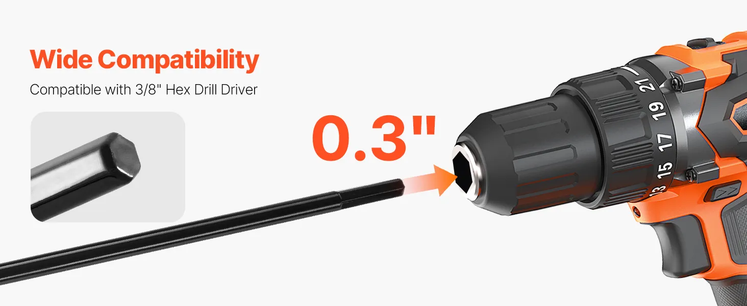 • Platus Suderinamumas: Featuring 3/8 colių hex karka, tai spiralinis grąžtas sklandžiai veikia su daugeliu belaidžių grąžtai. Tiesiog pridėti, nuspausti gaiduką, ir tegul gręžimo atlikti sunkų darbą už jus!