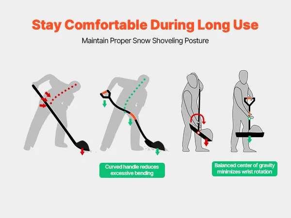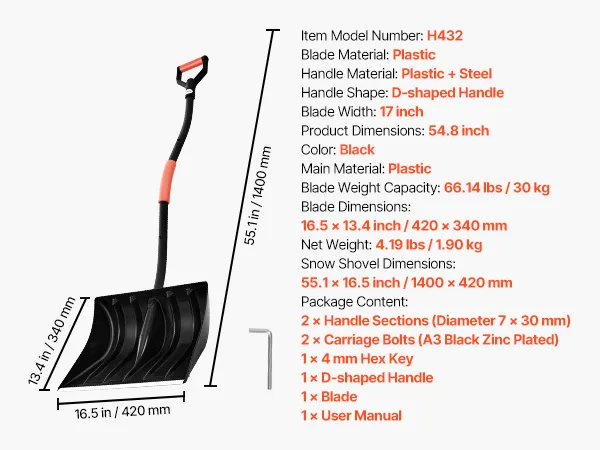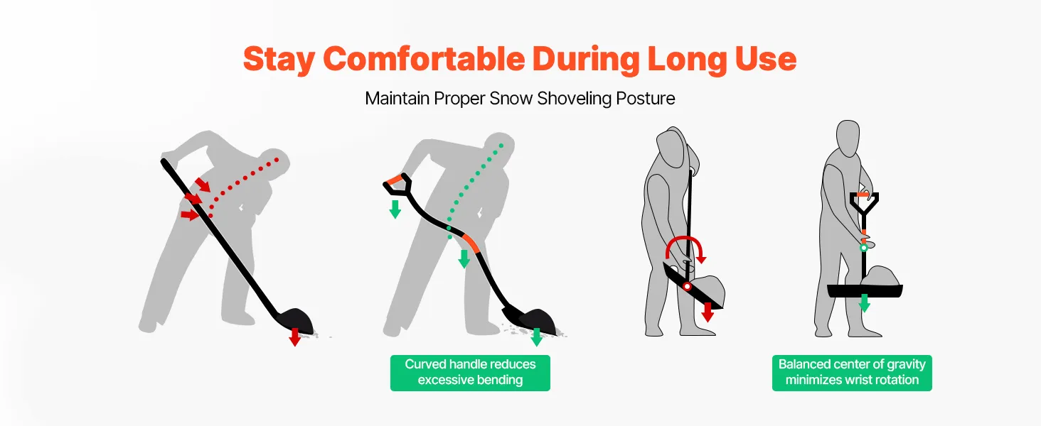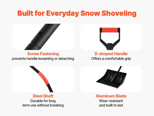 • Comfortable & Easy Operation: The heavy duty snow shovel features 55.1 in in length and an ergonomic curved design to ease the waist strain. EVA non-slip pad with D-shaped handle plus screw fastening provide firm grip and stable control in winter