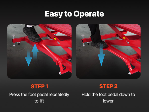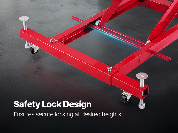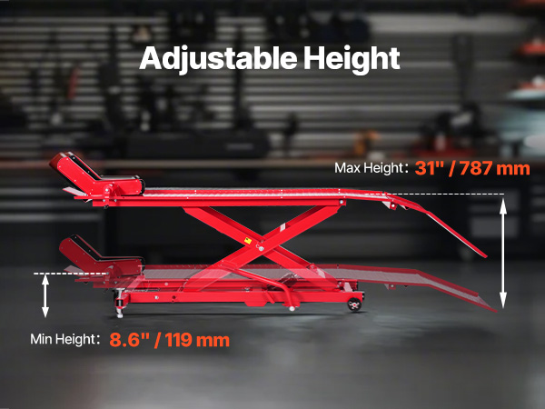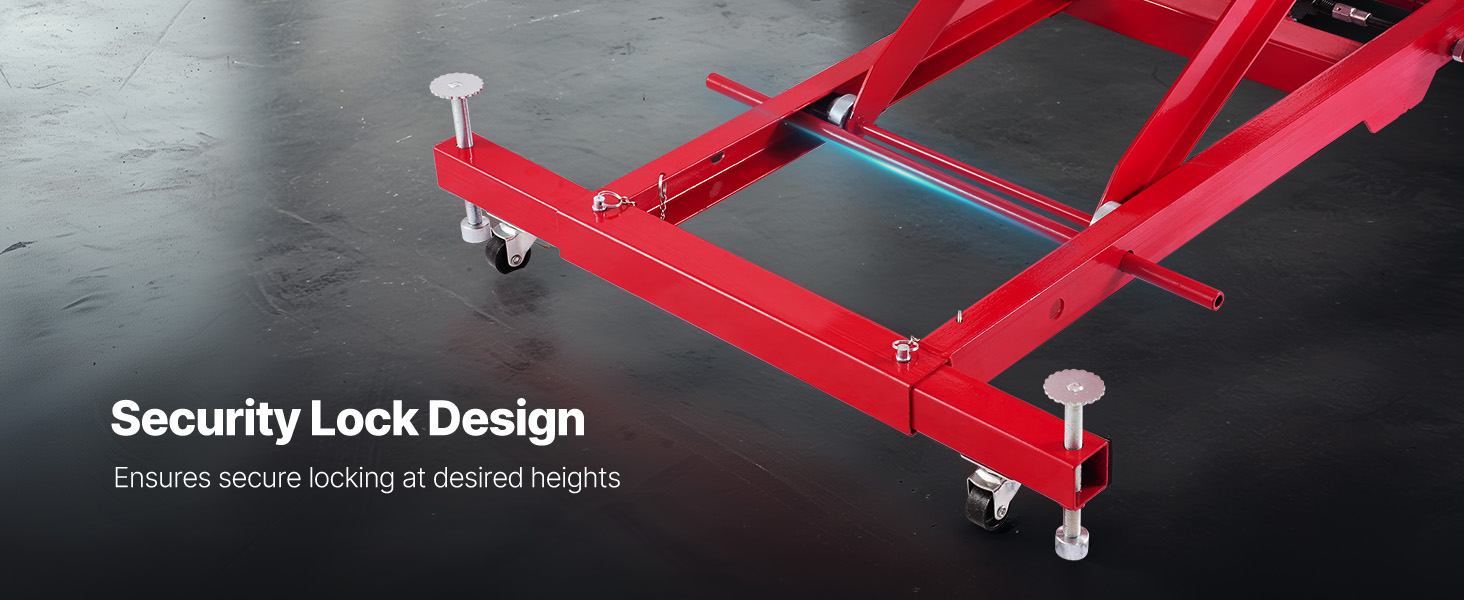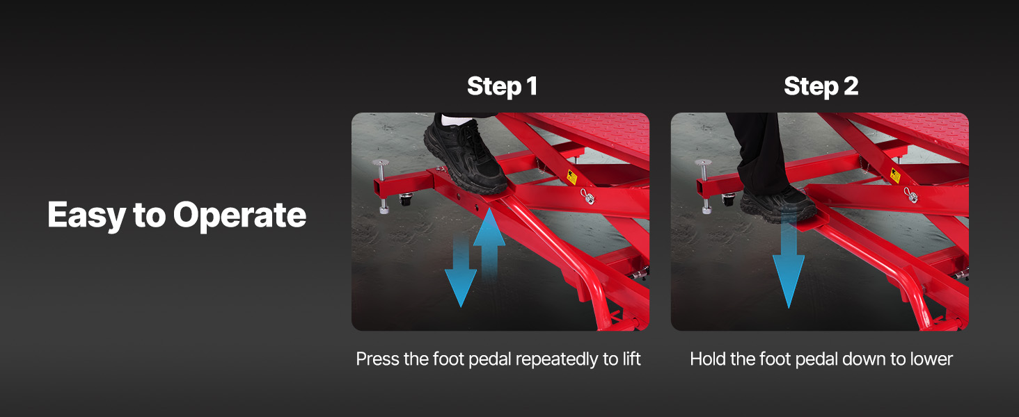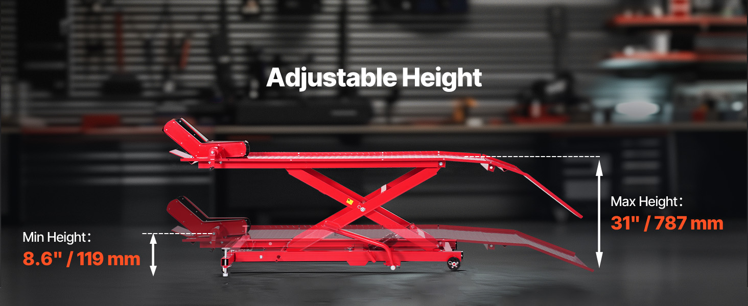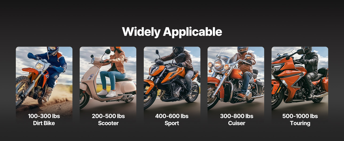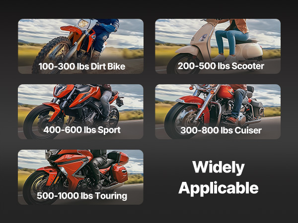 Šio motociklo keltuvas yra suderinamas su įvairių motociklų modelių, siūlanti stipri apkrova lengvai pakelti sunkiųjų motociklų. Puikios stabilumo ir reguliuojamo aukščio, tai daro motociklo priežiūros specialistas ir patogu. Komplekte saugumo pin užraktas saugiai pašalina aukštis.