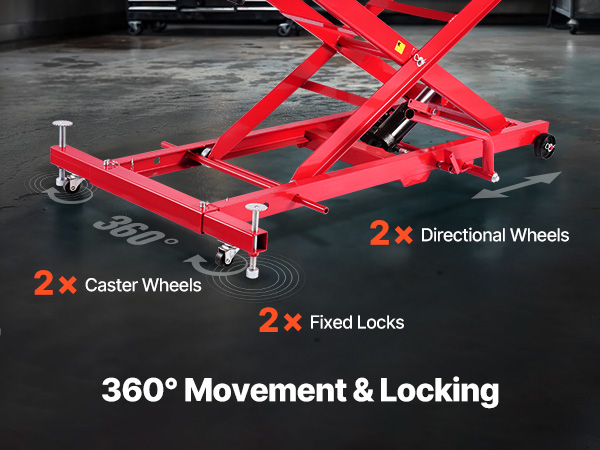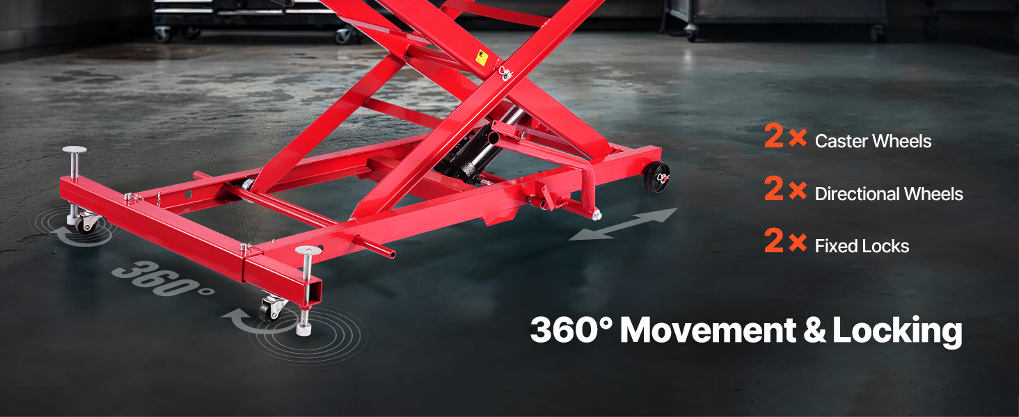 VEVOR Motorcycle Lift Table, 1000lbs Weight Capacity, 360° Flexible Moving Motorcycle Jack Stand, 8.6-31 in Height Range, Heavy Duty Bike Repair Stand with Security Lock for ATVs, Dirt Bike