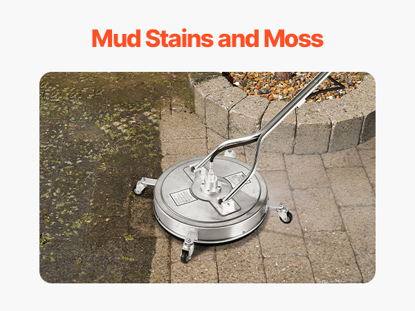 VEVOR 22" Pressure Washer Surface Cleaner, Stainless Steel Pressure Washer Attachments with 4 Wheels, 4500 Max PSI, 3/8 Quick Connector, 2 Spray Nozzles, Dual Handle, for Concrete, Patio, Sidewalk