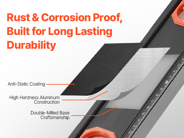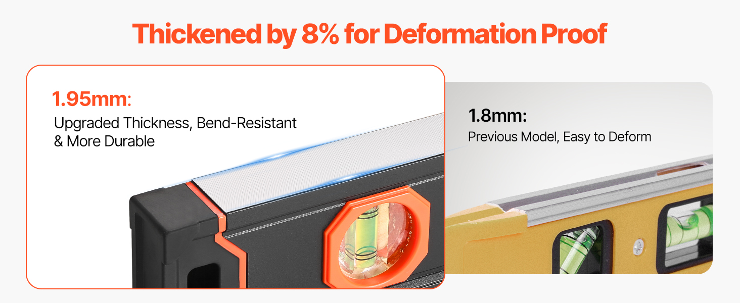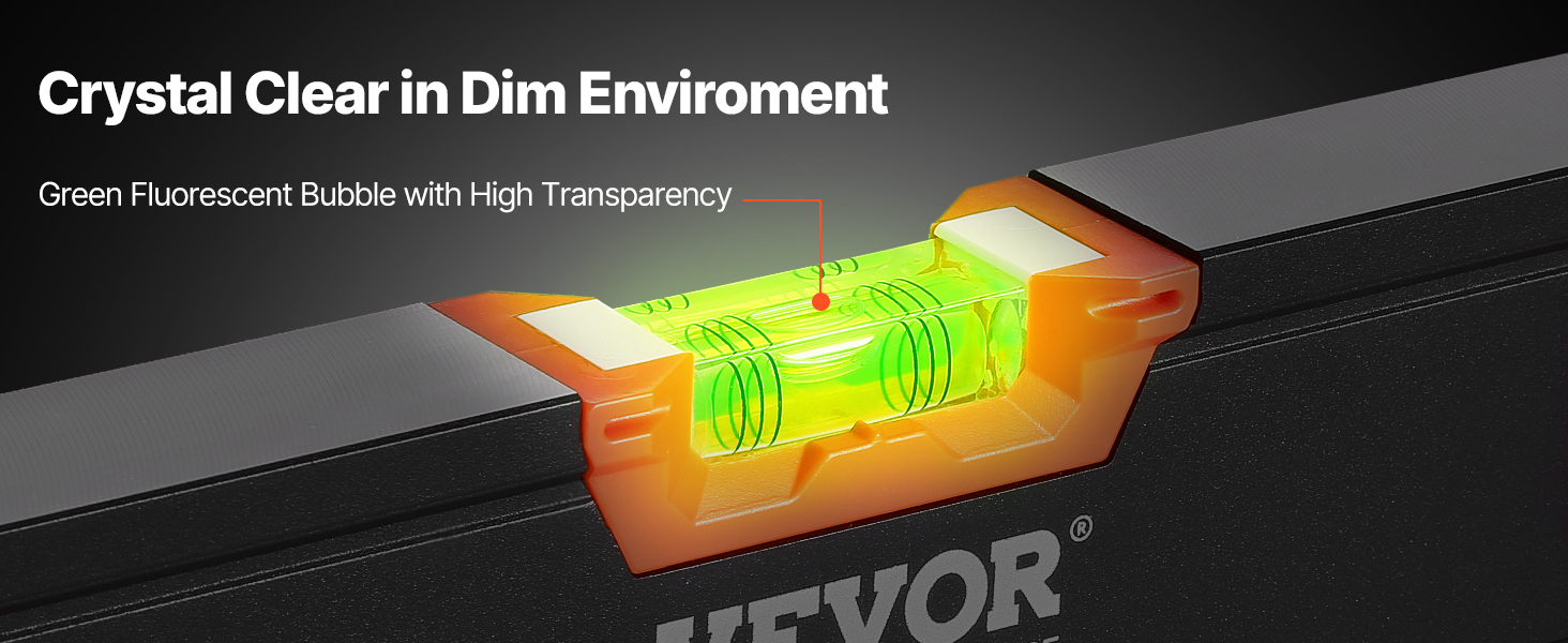 Mūsų torpeda lygiai patvarus, aukštos kietumas aliuminio korpuse, atsparus dilimo, korozijos, rūdijimo, ir sulenkti. 3 burbulas buteliukai iš akrilo stiklo pasiūlyti aišku, skaitymo ir 3 matavimo tvarkyti įvairių tipų poreikius. Sutirštės galiniais dangteliais ir stiprūs magnetai pateikti atsparus smūgiams, saugiai pritvirtinti ir lengva matuoti.