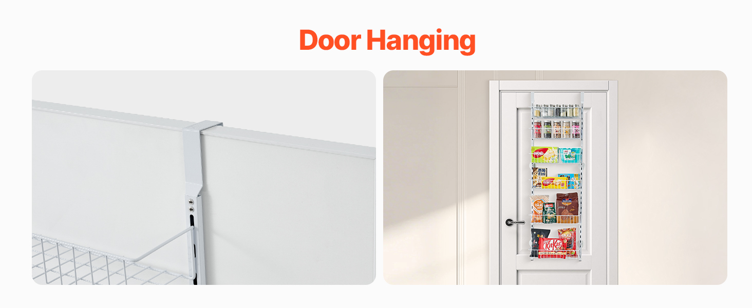 VEVOR Over the Door Pantry Organizer, 6-Tier Pantry Organization and Storage, Heavy-Duty Steel Hanging Spice Rack, Adjustable Wall Seasoning Shelves, for Home Kitchen Laundry Room Bathroom, White
