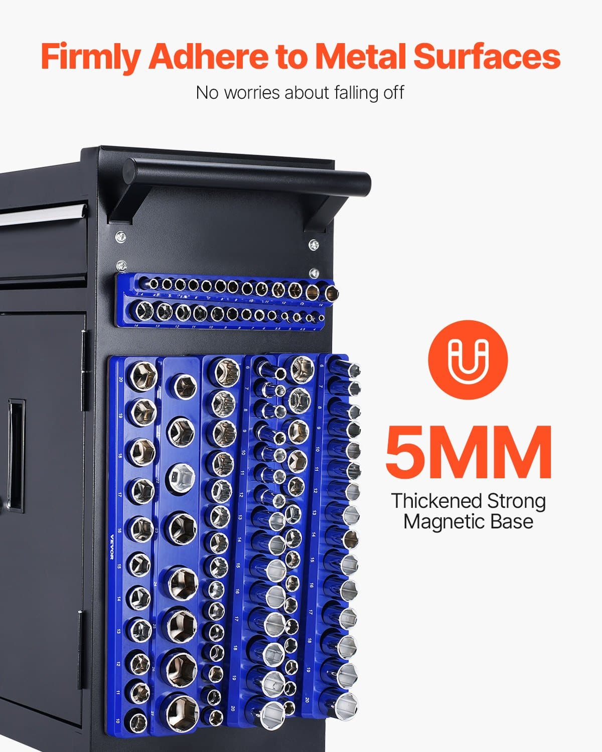VEVOR magnetinių lizdų organizatoriaus rinkinys, 8 vnt lizdų laikiklis, 1/4', 3/8' ir 1/2' metriniai SAE lizdų padėklai su aiškiomis etiketėmis, laikykite iki 199 vnt. standartinių ir gilių lizdų, blaue ir raudonų (lizdai neįtraukti)