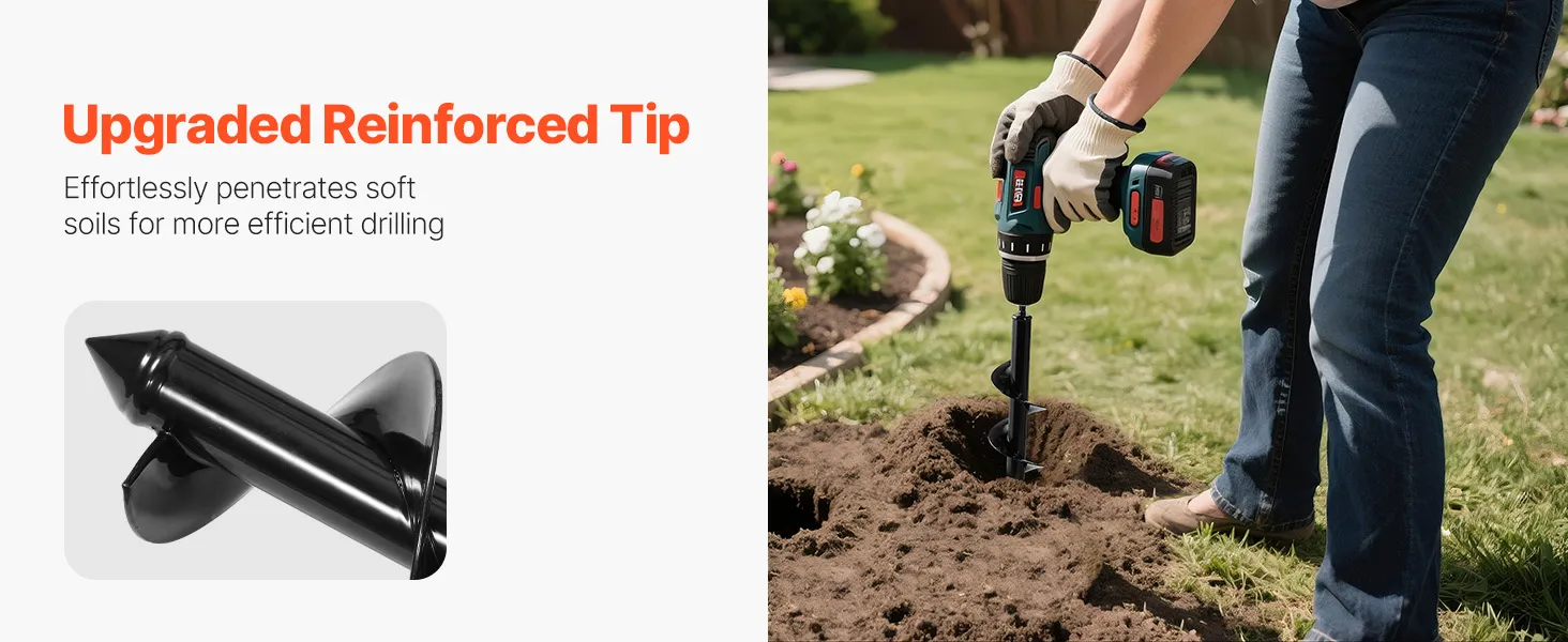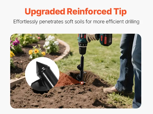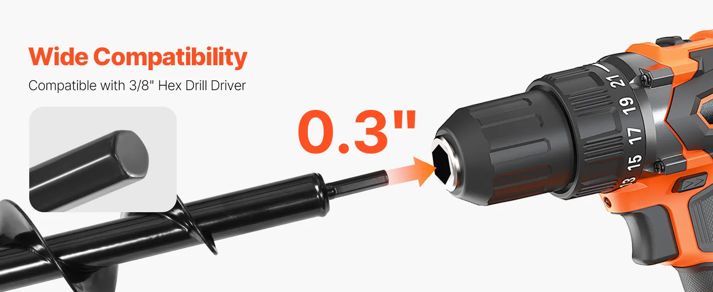 Q: kokio tipo gręžimo suderinamas su šia sraigės tiek?A: Dauguma sodo sraigės bitų tilps į bet kurią 3/8" hex drive gręžimo arba 20mm ID ratai, gręžimo, kad jie atitiktų standarto belaidžio ar kuro grąžtai. Įsitikinkite, kad jūsų grąžtas turi pakankamai sukimo momento efektyvus kasimas.Q: Kas dirvožemio tipų, tai gali sraigės grąžtas rankena?A: Tai sraigės gerai veikia, laisvas, kad šiek tiek suspaustas dirvožemis, įskaitant sodas lovos, molio ir smėlio dirvožemyje. Tačiau labai akmenuotas ar sunkiai supakuoti dirvožemio, daugiau galingas gręžimo ir papildomų pastangų gali prireikti.Q: Ką dar aš galiu naudoti šį sraigtą grąžtas, skirtas be sodinti?A: be kasti skyles svogūnėlių, gėlių ir daržovių, taip pat galite gręžti skyles mažas aptvarų atramoms, palapinės, arba lauko apdaila.