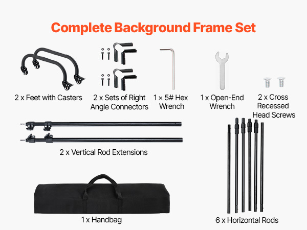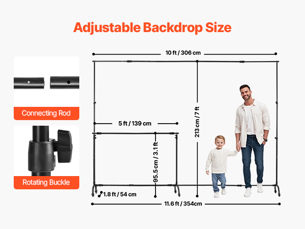 • Reguliuojamas Dydis: Mūsų reguliuojamas fone stovi palaiko backdrops iki 7 x 10 pėdų / 213 x 300 cm. Aukštis paramos lenkai gali tęstis nuo 3.1 ft / 95.5 cm iki 7 pėdų / 213 cm, ir plotis gali tęstis nuo 5 ft / 139 cm iki 10 pėdų / 306 cm, kad tilptų įvairių fone dydžių. Pastaba: Šis produktas neturi būti balionai, dekoratyviniai elementai, arba fonas audinio.