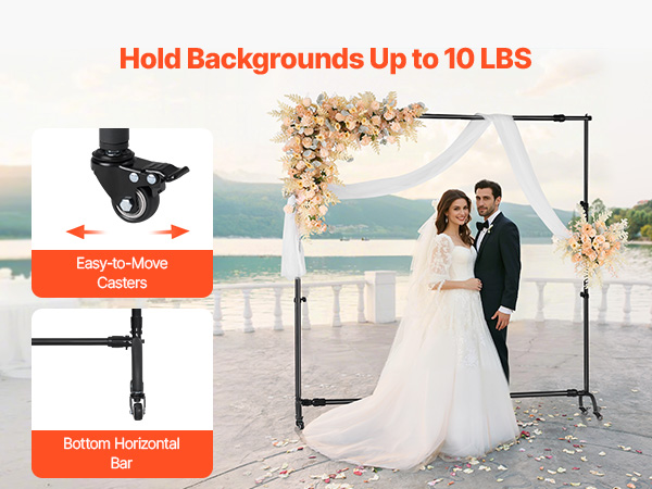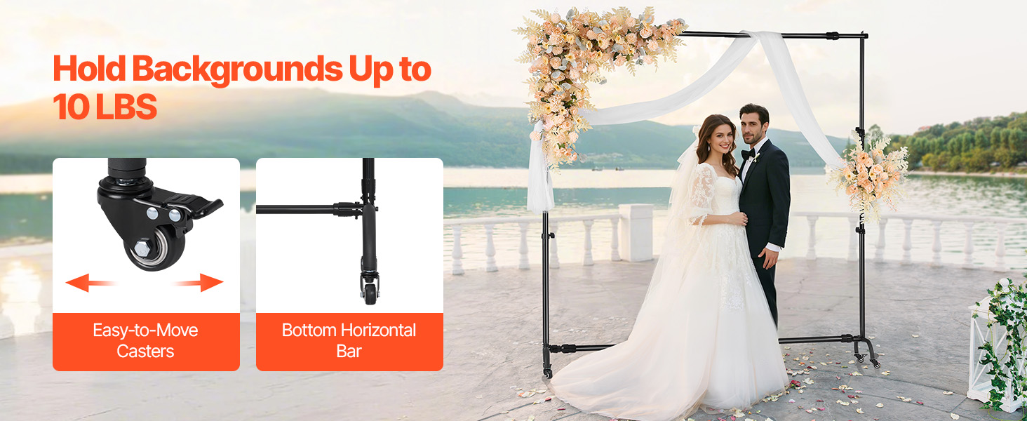 VEVOR Adjustable 213×306 cm Photo Backdrop Stand with Wheels, Heavy-Duty Background Support for Studio, Wedding, Party