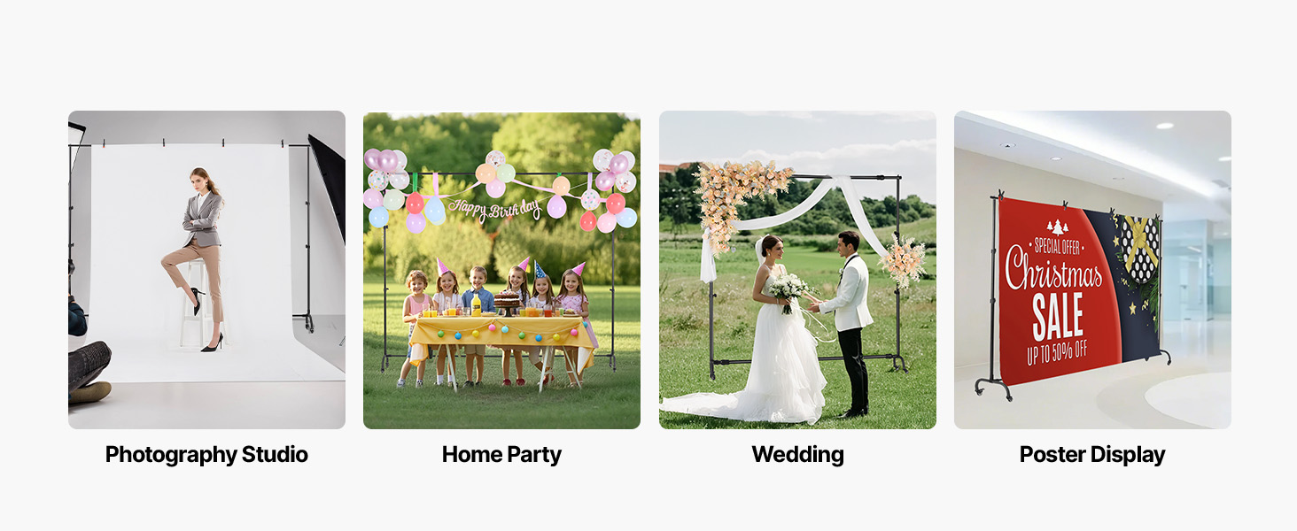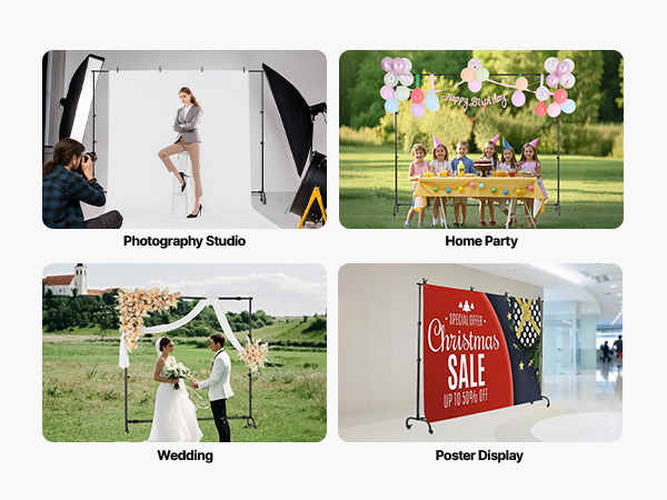 • Erdvės Taupymo ir Mobiliojo ryšio: Mūsų foto fonas rėmelis funkcijos ratų bazė lengvai judėti, ir jo kompaktiškas dizainas užima mažiau vietos ant grindų, todėl galite judėti laisvai, be kliūčių.
